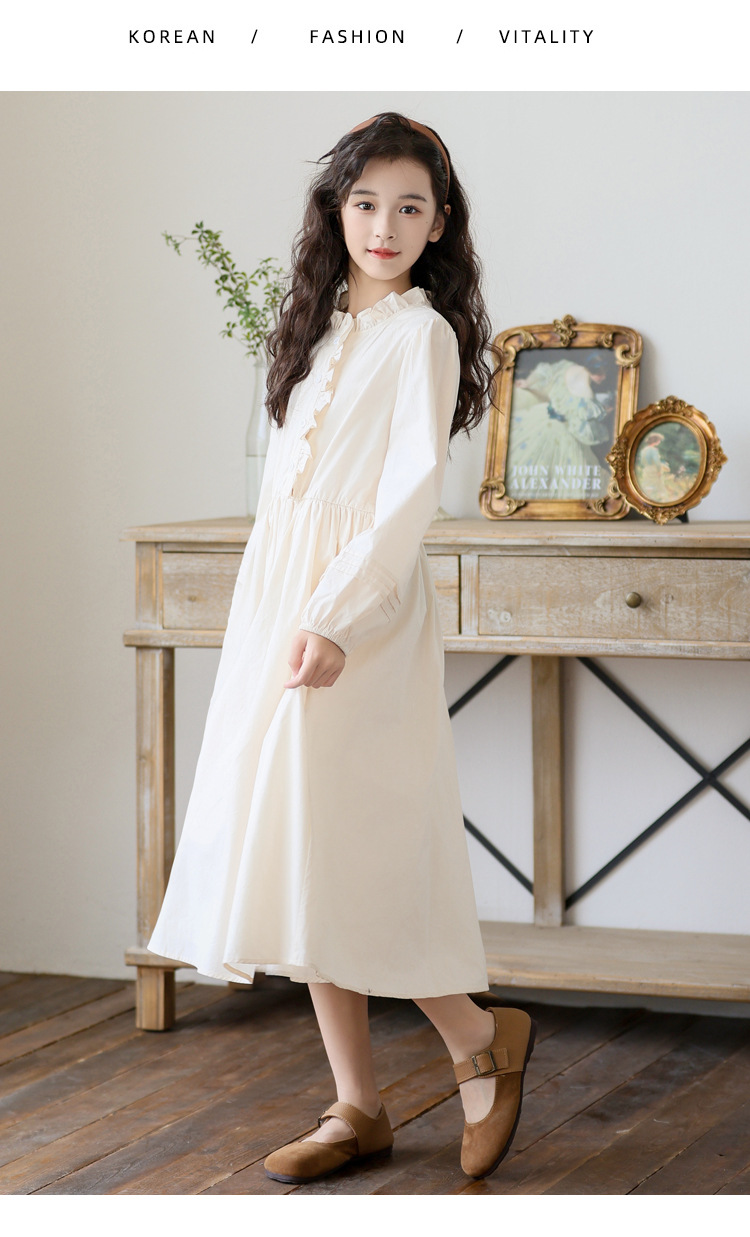 소녀 원피스 가을 긴 소매 레이스 코튼 긴 스커트 2024 새로운 어린이 봄과 가을 서양식 스커트스토어 가기