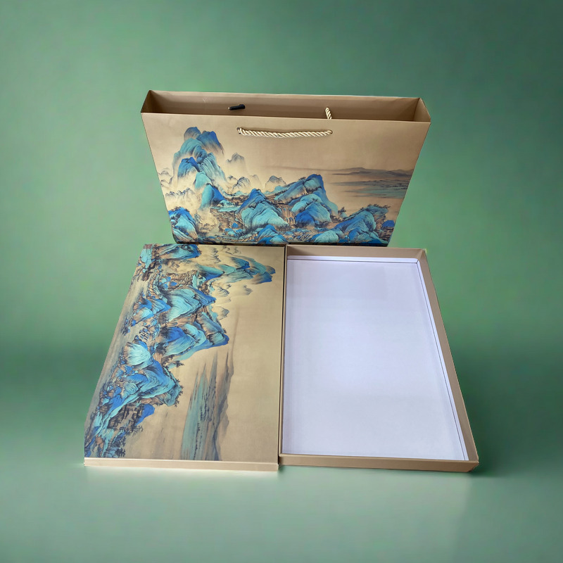 • 풍경화 하늘과 땅 덮개 선물 상자, 완전한 세트(내부 상자 + 핸드백)
