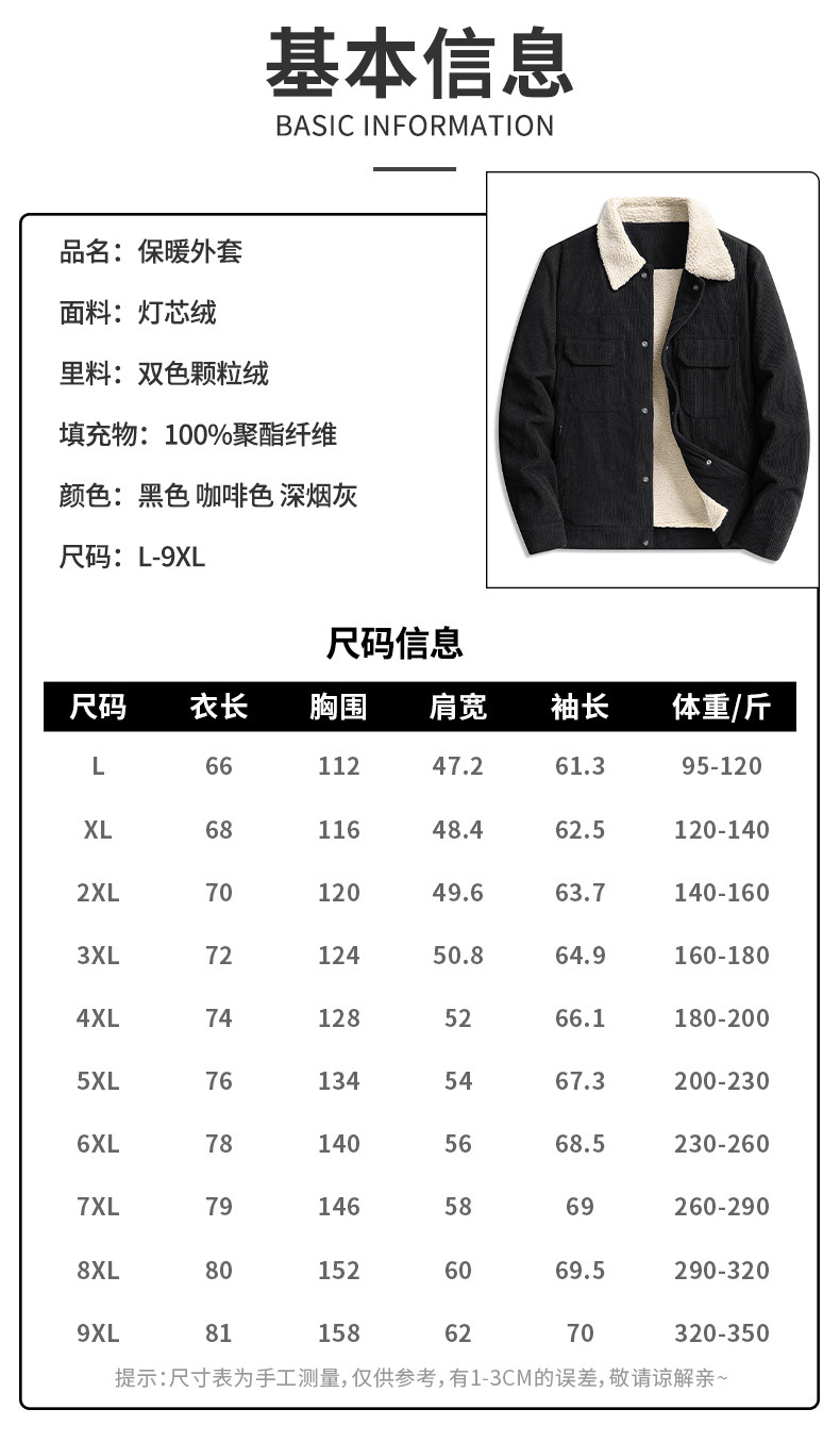L-9XL 코듀로이 남성용 코트 플러스 사이즈 가을과 겨울 기모 두꺼운 양가죽 따뜻한 캐주얼 재킷스토어 가기