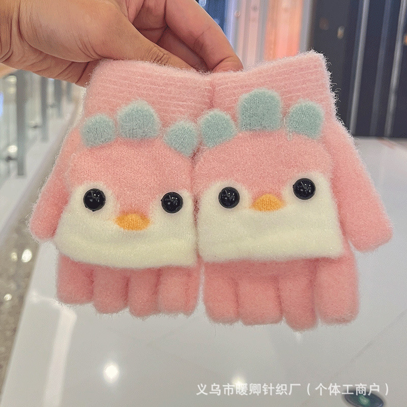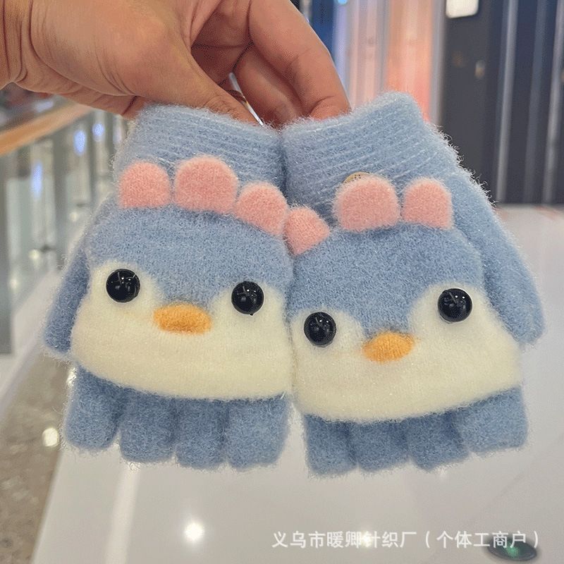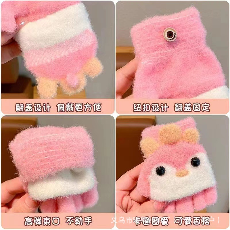 어린이 장갑 가을과 겨울 남녀 아기 두꺼운 따뜻한 장갑 어린이 초등학생 반 손가락 플립 니트 쓰기스토어 가기