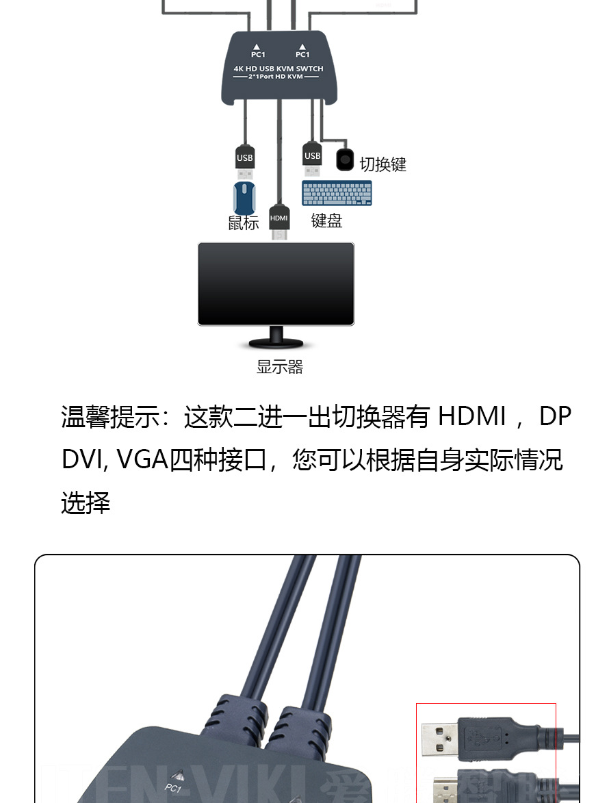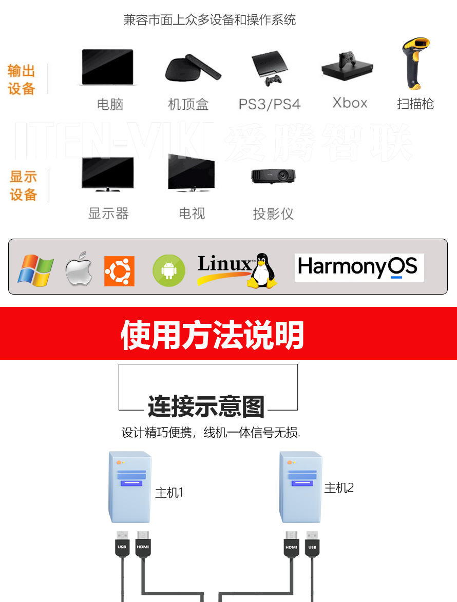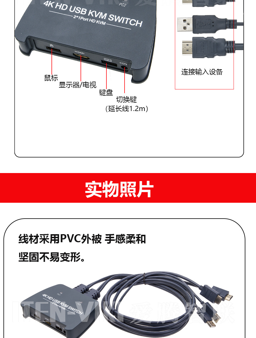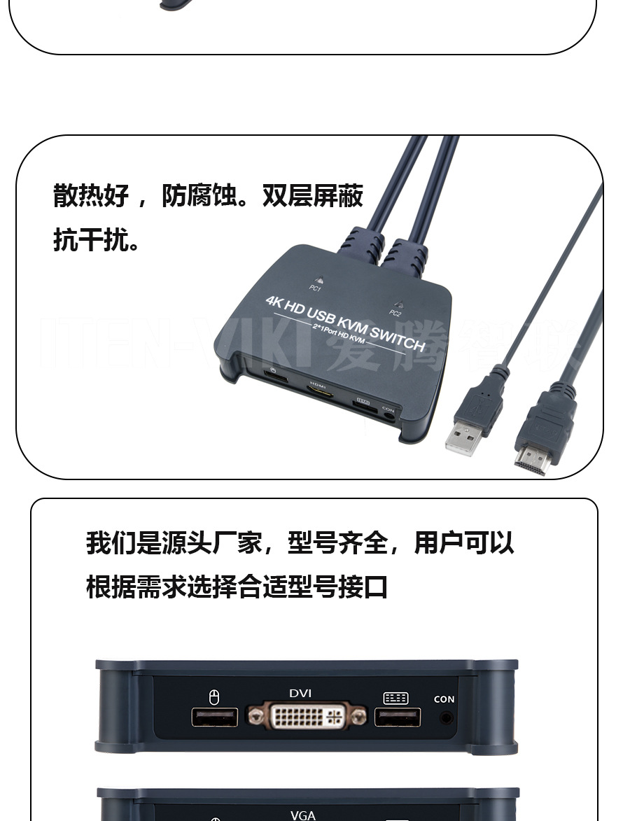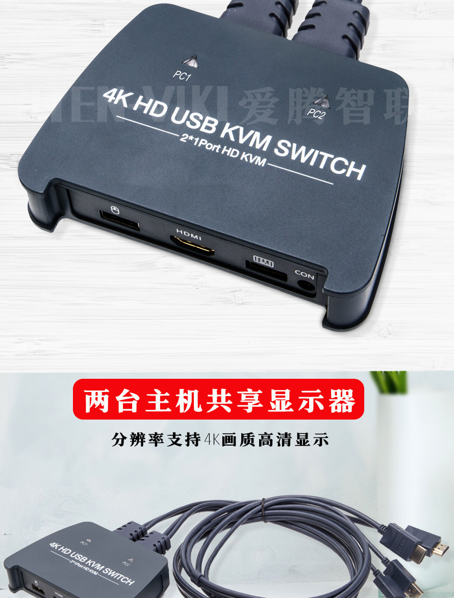 ITEN Aiteng KVM 스위치 2 in 1 out 2 HDMI USB 공유 통합 기계 HD 4K 스크린 커터스토어 가기