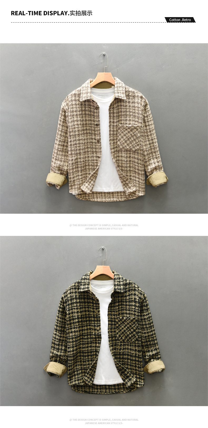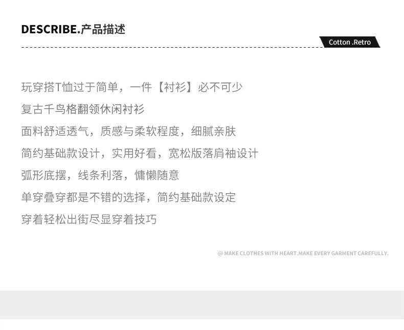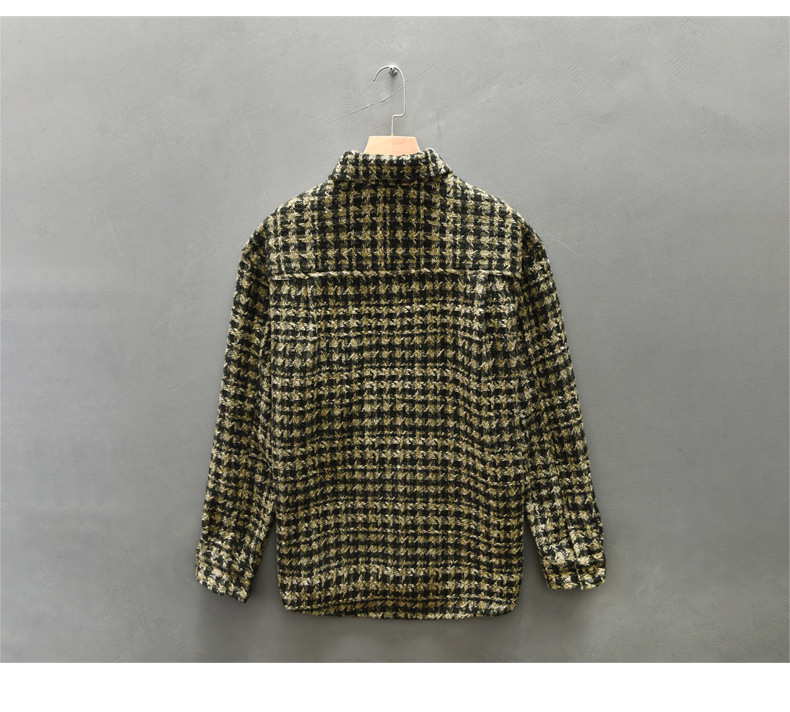 Z258 남자의 가을 새로운 Houndstooth 복고풍 캐주얼 긴 소매 셔츠스토어 가기