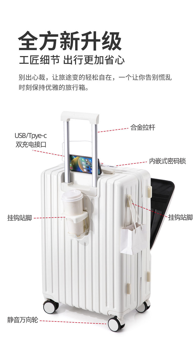 수하물 케이스 여성 휴대용 전면 오프닝 타이로드 암호 상자 20 "탑승 가방 남자의 다기능 강하고 내구성스토어 가기