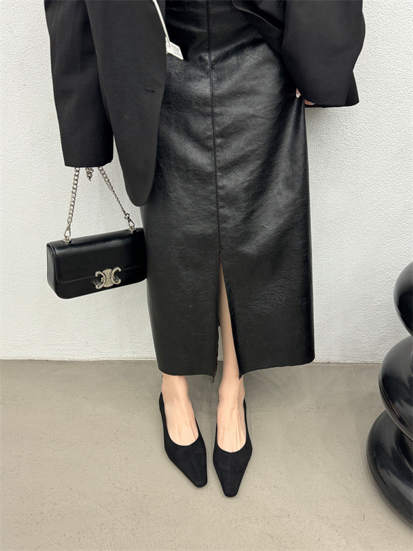 2024 새로운 로우 힐 스퀘어 헤드 스티칭 스웨이드 얕은 입 싱글 신발 여성 신발 두꺼운 힐 작은 슬립 온 작업 신발스토어 가기
