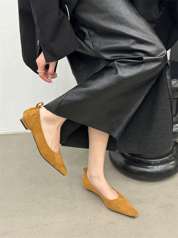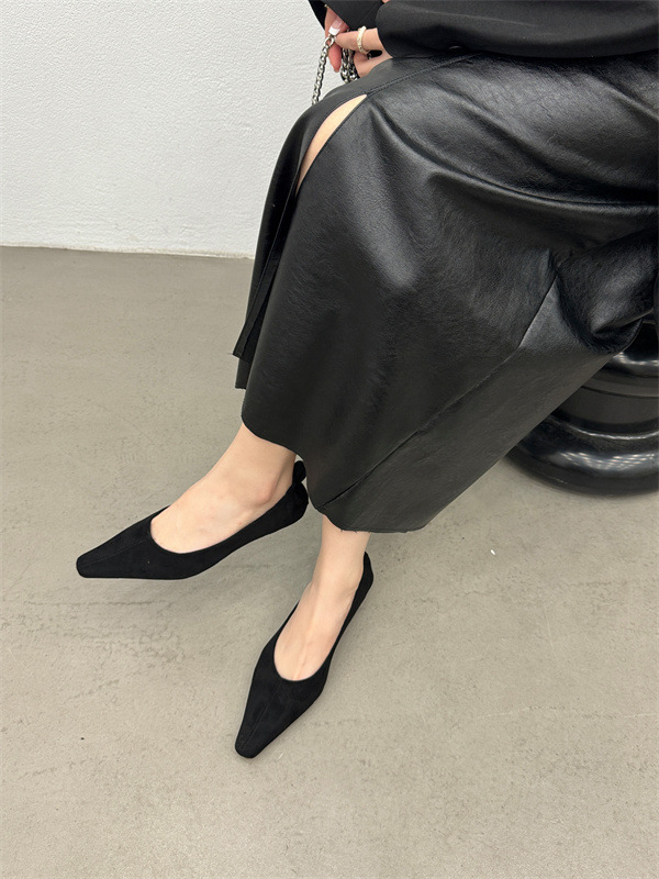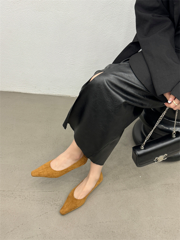2024 새로운 로우 힐 스퀘어 헤드 스티칭 스웨이드 얕은 입 싱글 신발 여성 신발 두꺼운 힐 작은 슬립 온 작업 신발