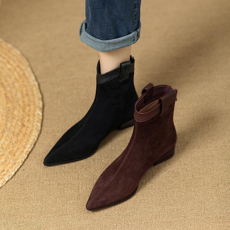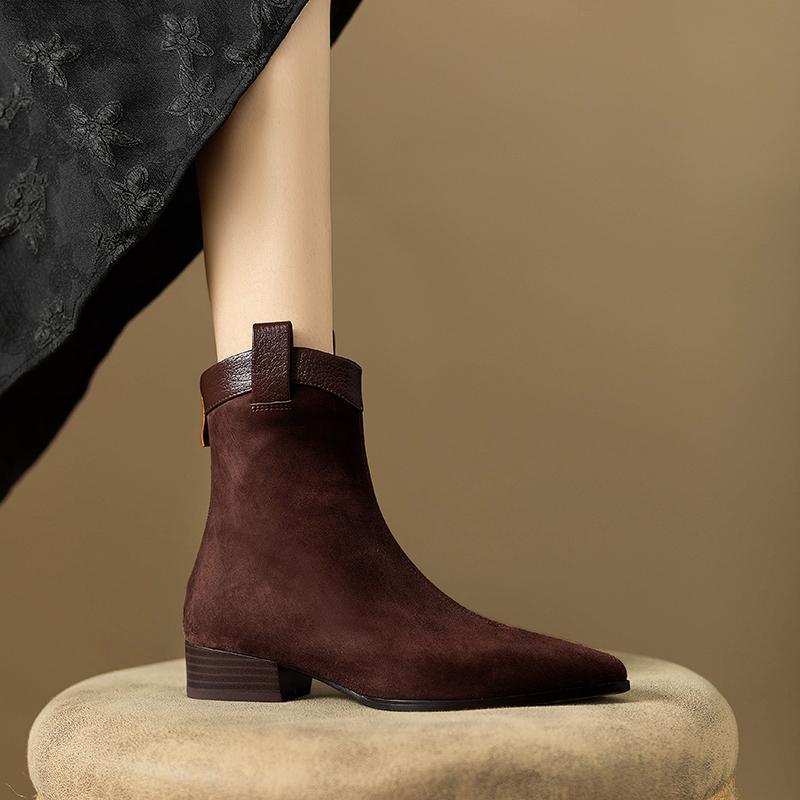 소프트 스웨이드 레트로 웨스턴 카우보이 부츠 여성 블록 힐 발목 부츠 겨울 서리 드 올 매치 포인트 첼시 부츠 발목 부츠