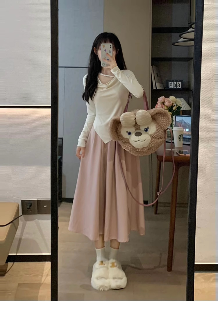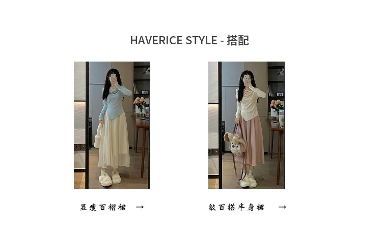 부드러운 스타일 세트 불규칙한 긴팔 티셔츠 최고 여성 가을 높은 허리 A 라인 스커트 치마 우아한 투피스 세트스토어 가기