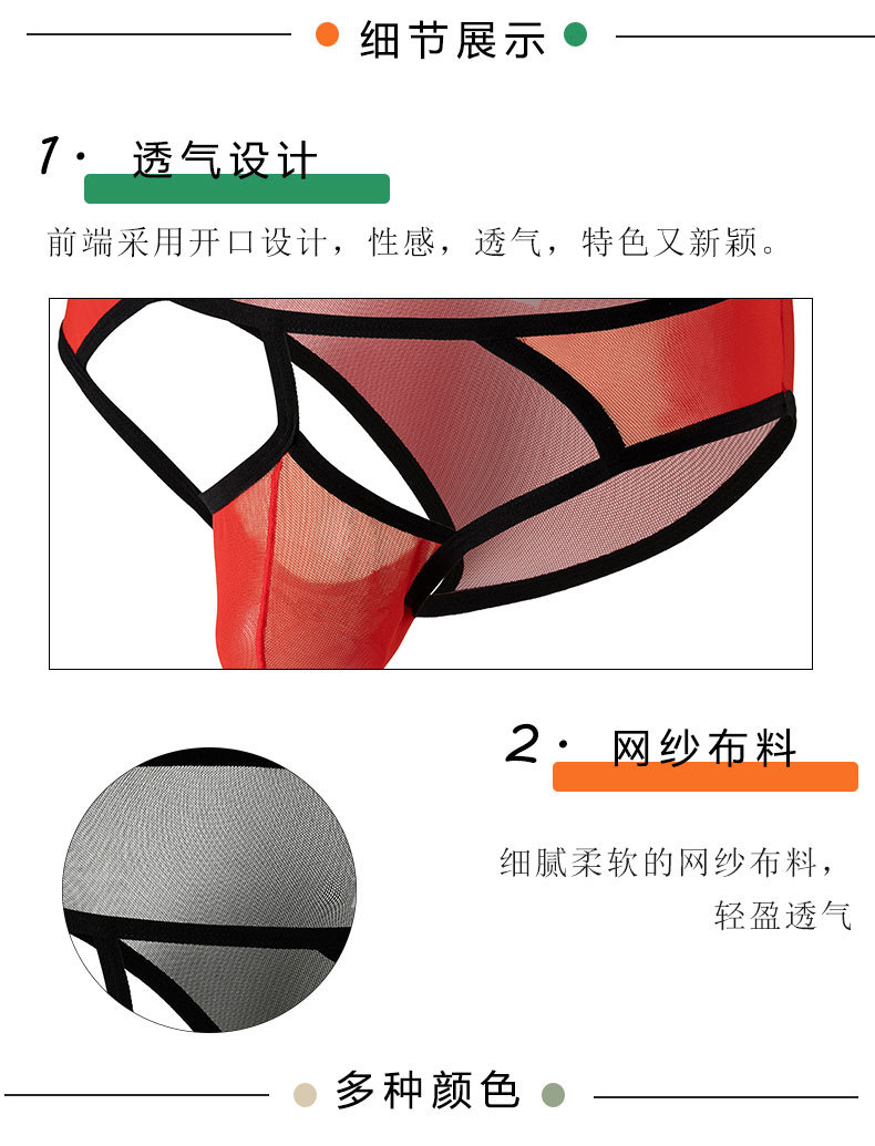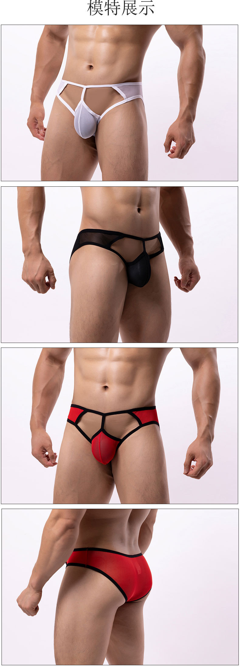 남성 브리프 유럽과 미국 섹시한 통기성 메쉬 스트레치 단색 속옷 크로스-테두리스토어 가기