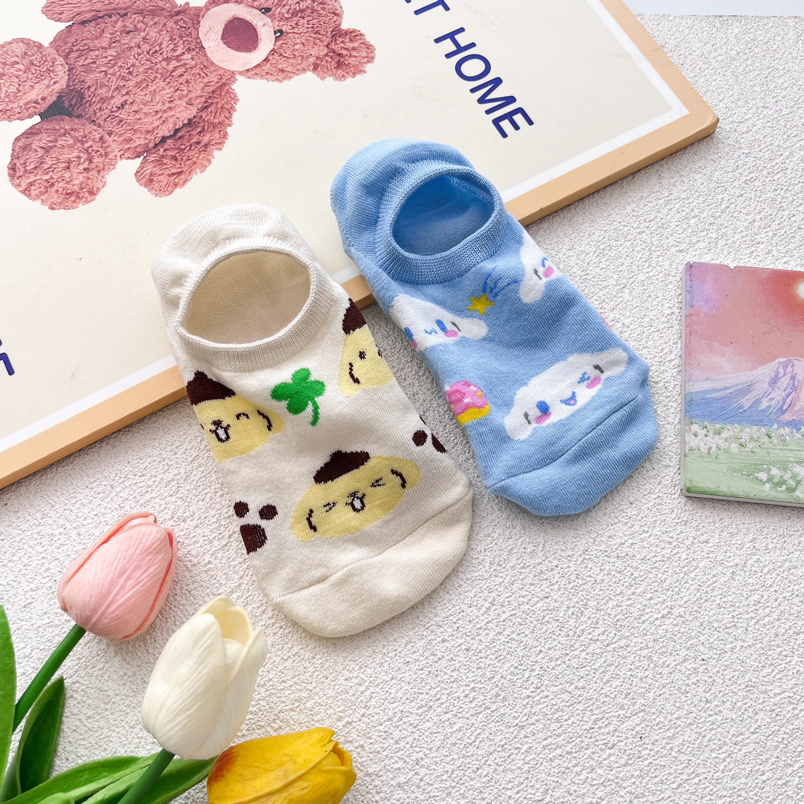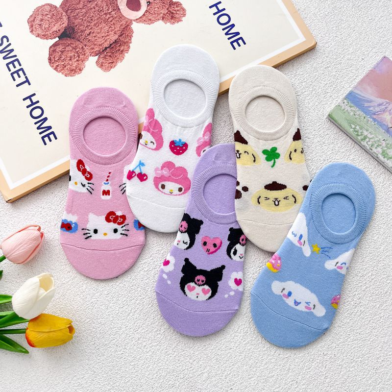 일본 만화 양말 어린이 캔디 컬러 귀여운 얕은 여성 보트 양말 애니메이션 만화 미끄럼 방지 실리콘 보이지 않는 양말