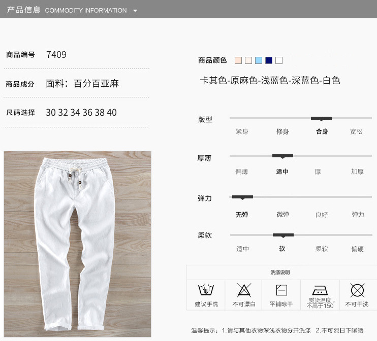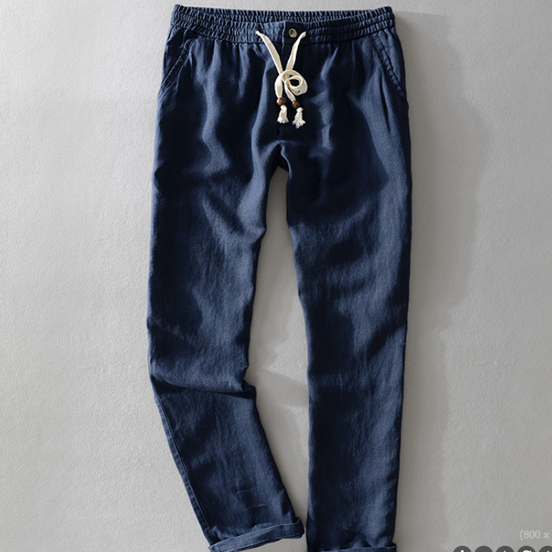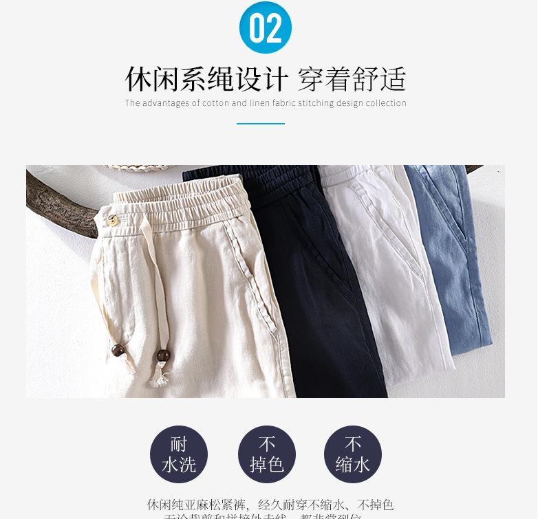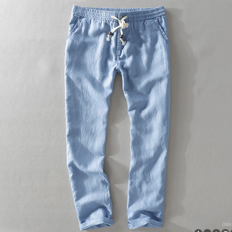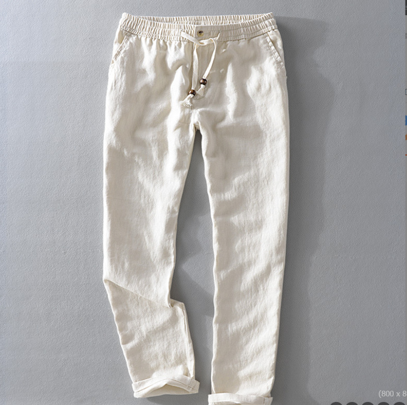 Y7409 탄성 허리 비치 린넨 캐주얼 바지 남성용 스트레이트 얇은면과 린넨 남성용 바지스토어 가기