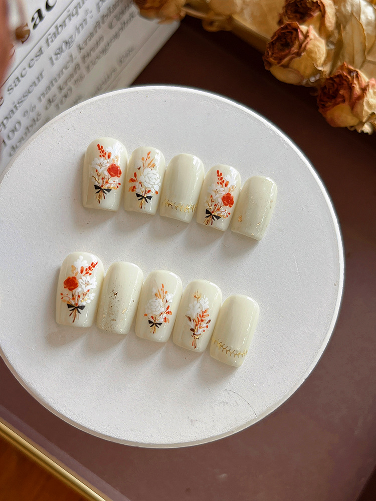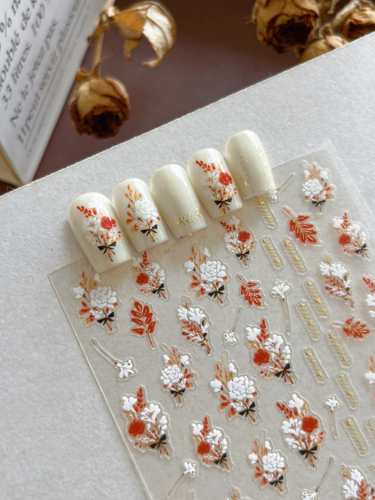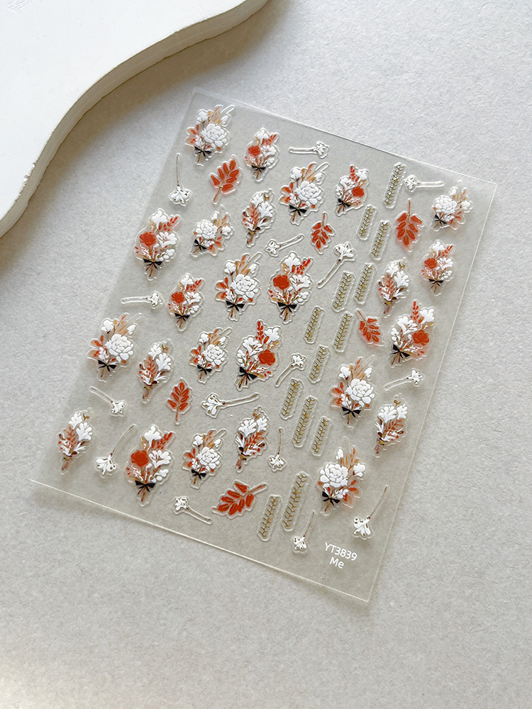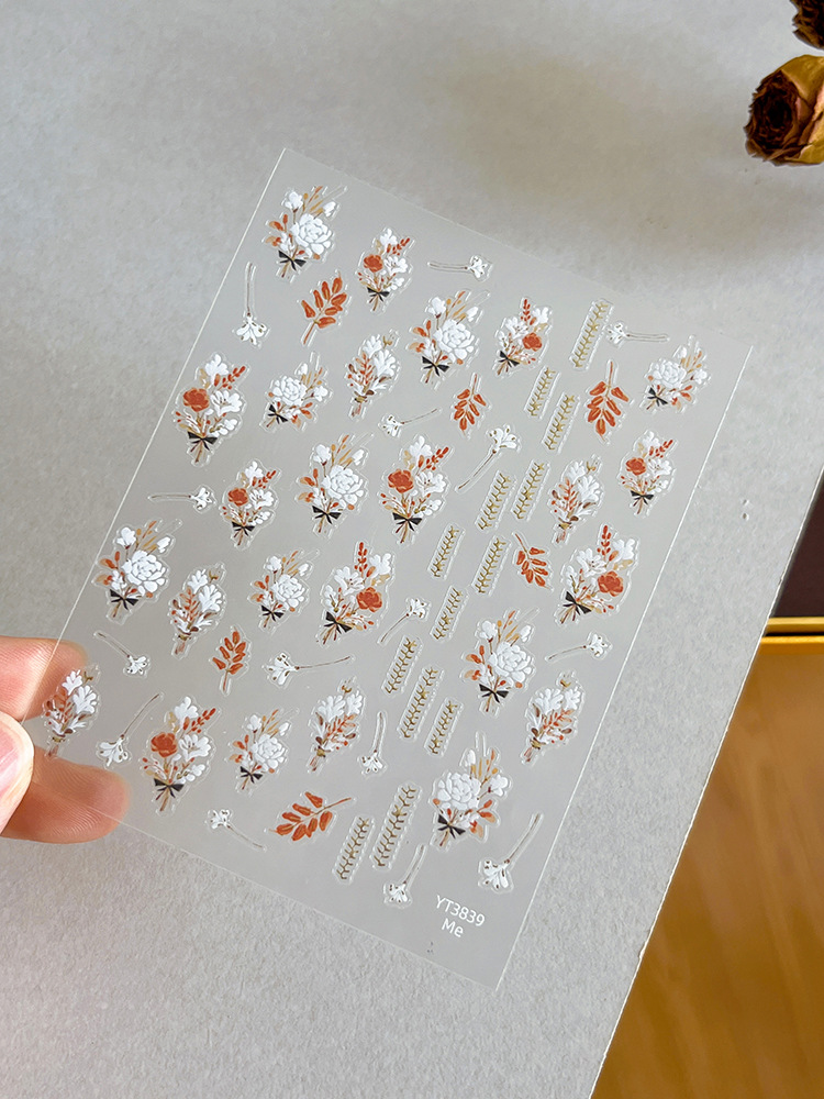 YITU 개미 그림 작은 꽃다발 네일 아트 스티커 보리 붉은 꽃 청동 흰색 네일 장식 데칼 YT3839