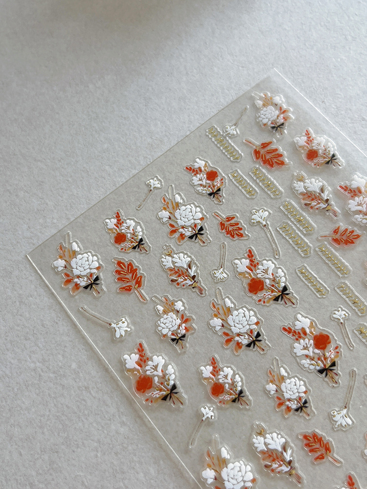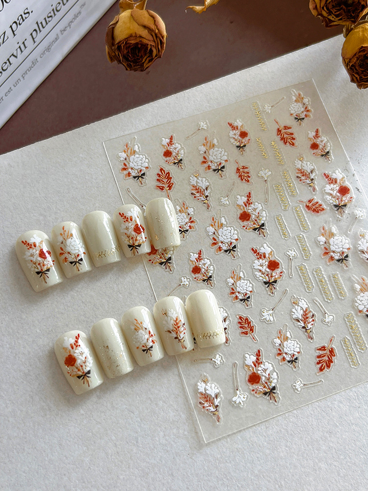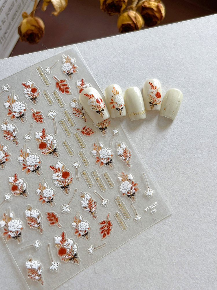 YITU 개미 그림 작은 꽃다발 네일 아트 스티커 보리 붉은 꽃 청동 흰색 네일 장식 데칼 YT3839스토어 가기