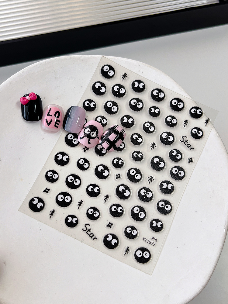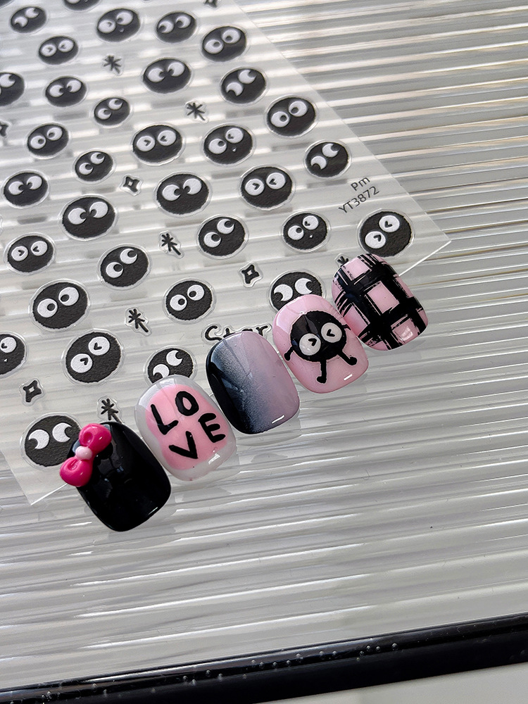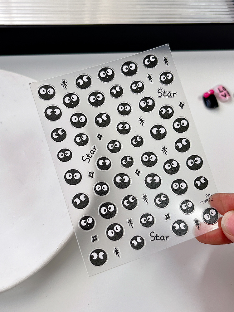 YITU 개미 그림 비행기 얇은 터프 귀여운 만화 석탄 볼 네일 쥬얼리 접착제 블랙 네일 장식 스티커 YT3872
