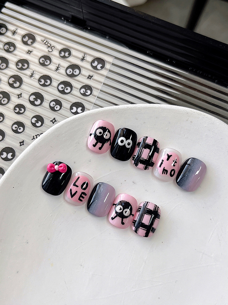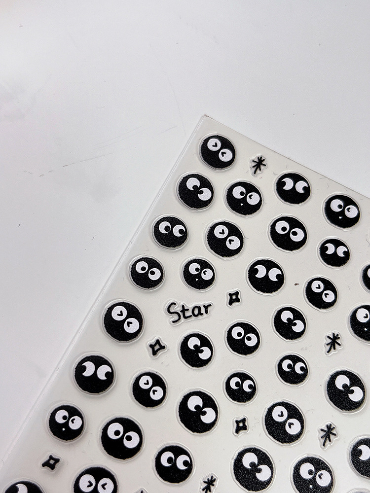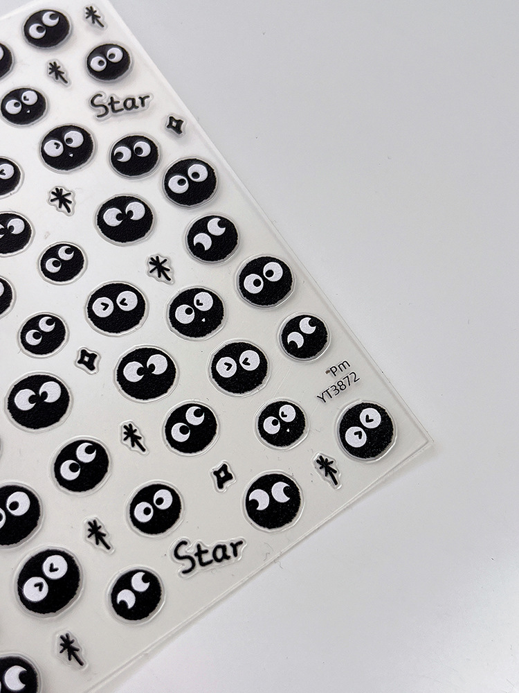 YITU 개미 그림 비행기 얇은 터프 귀여운 만화 석탄 볼 네일 쥬얼리 접착제 블랙 네일 장식 스티커 YT3872스토어 가기