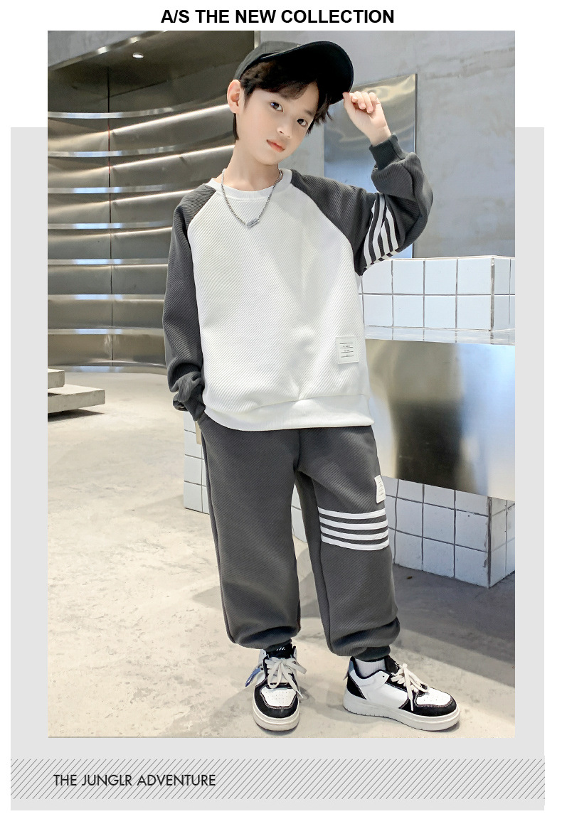 소년 가을 스포츠 세트 2024 새로운 큰 소년 긴팔 옷 어린이 외국 스타일 투피스 도매