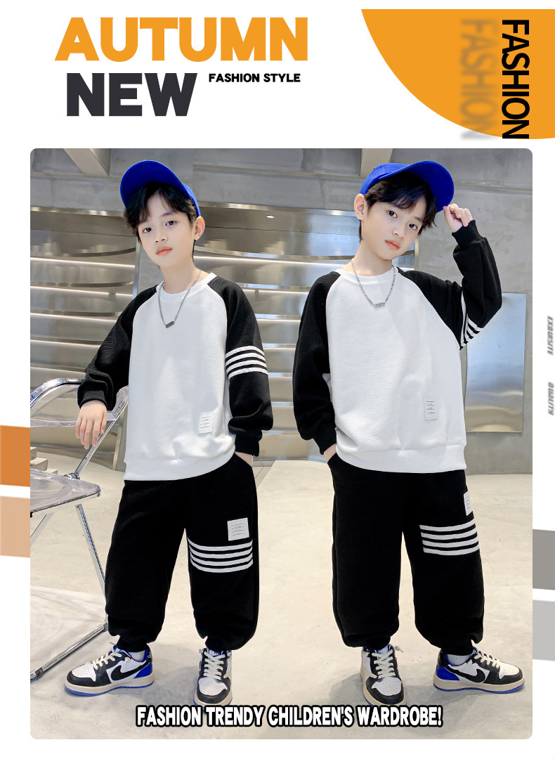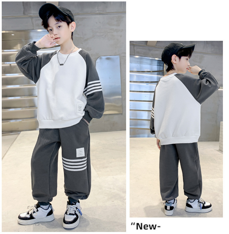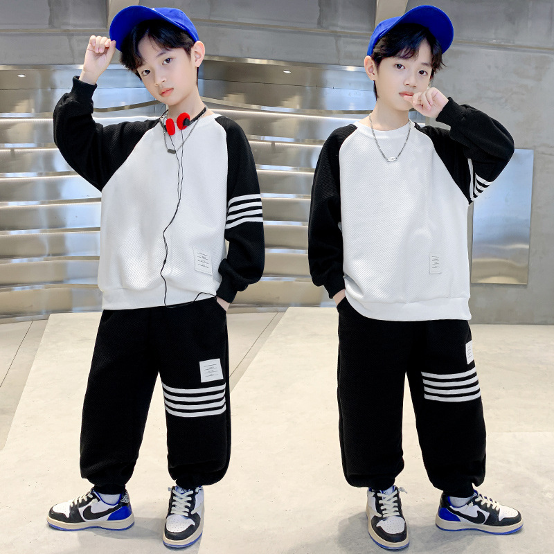 소년 가을 스포츠 세트 2024 새로운 큰 소년 긴팔 옷 어린이 외국 스타일 투피스 도매스토어 가기