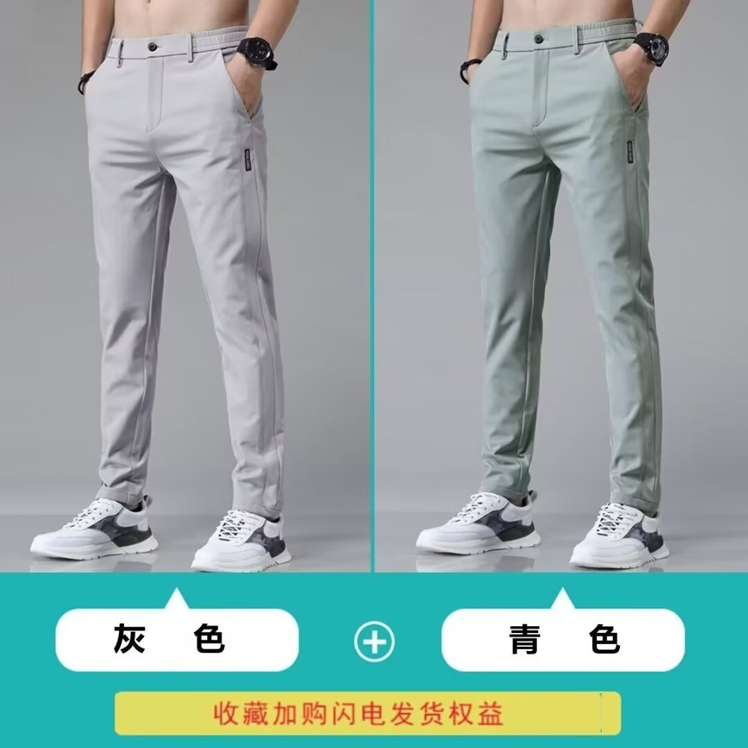 여름 아이스 실크 비즈니스 바지 스트레이트 남성 바지 느슨한 캐주얼 국경 도매 통기성 슬림 핏 바지스토어 가기
