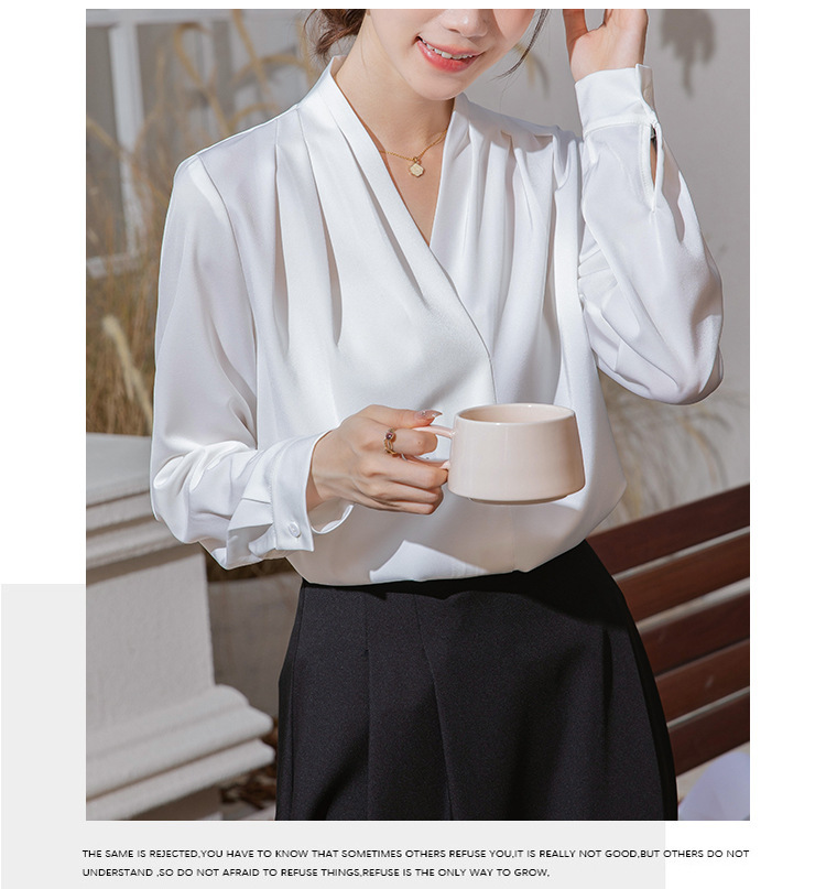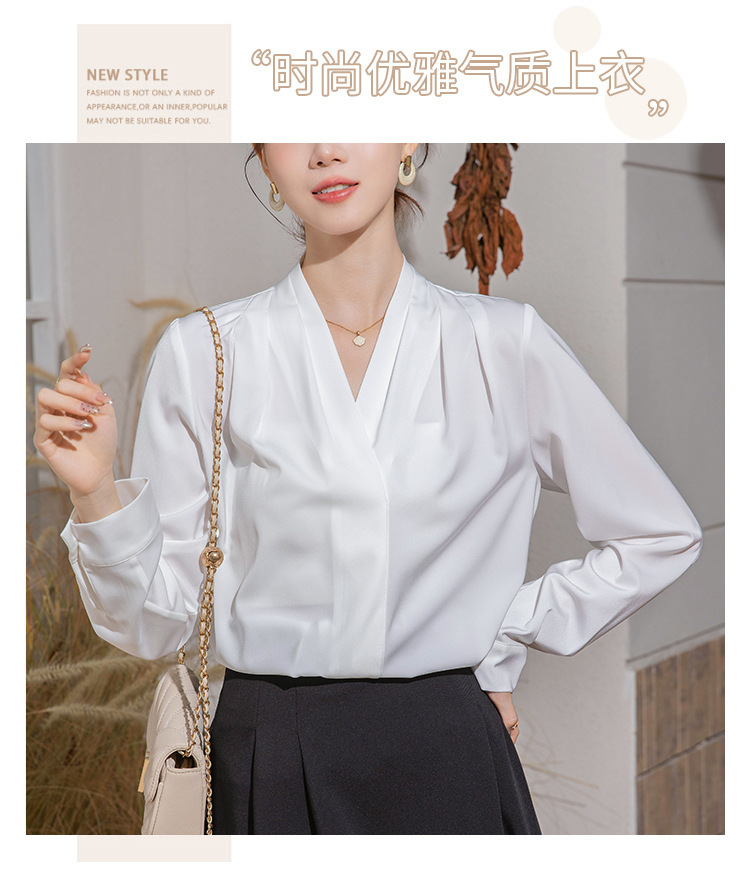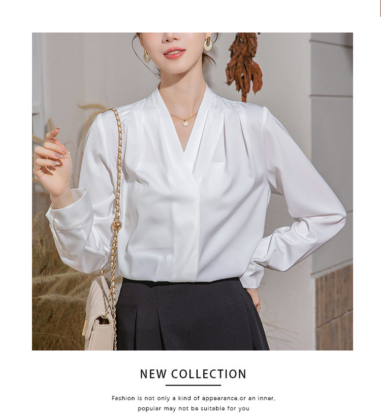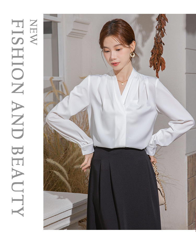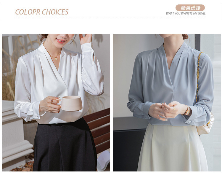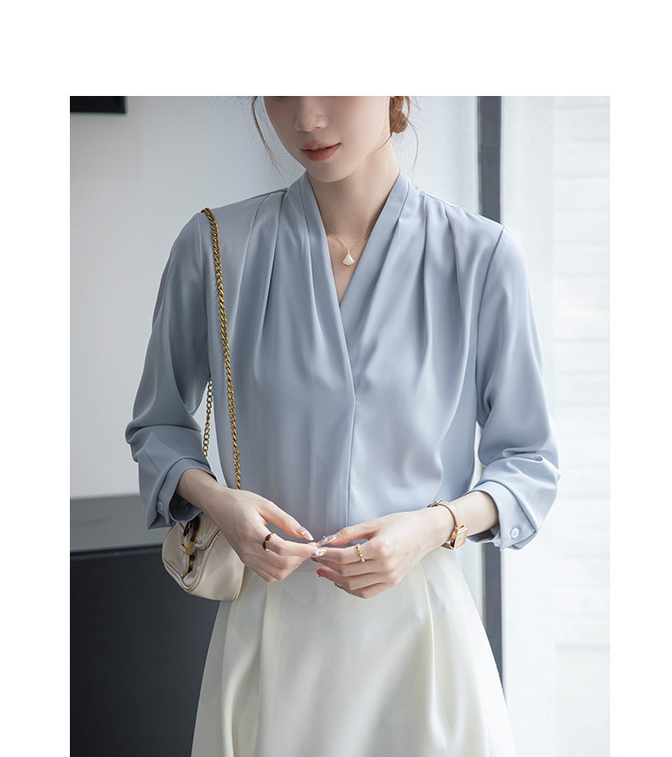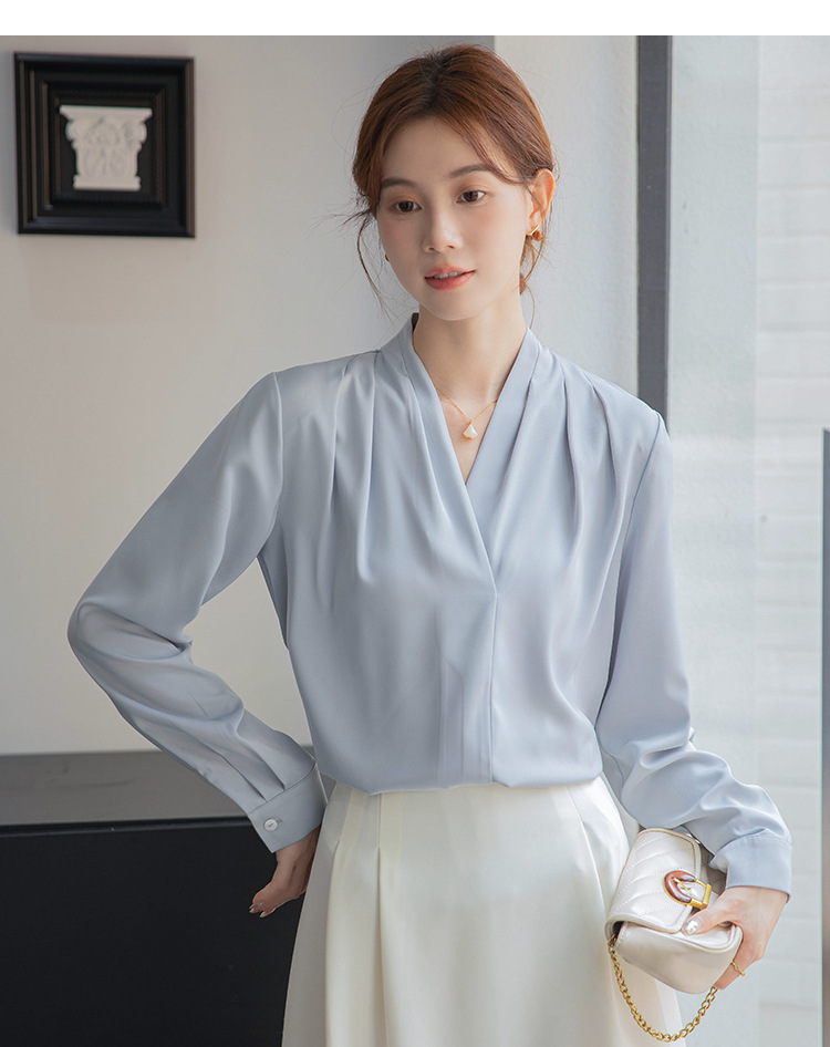 블루 그레이 V 넥 셔츠 여성용 긴팔 가을 착용 라이트 성숙한 스타일 직장 통근 교육 경력 입고 인터뷰 원피스스토어 가기