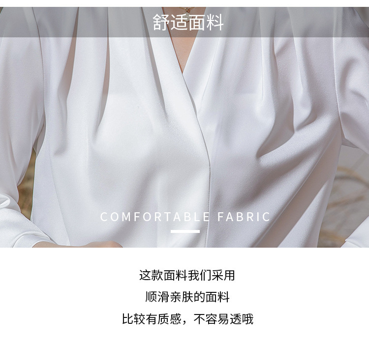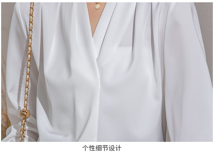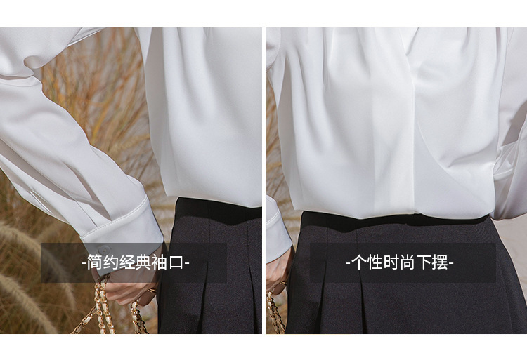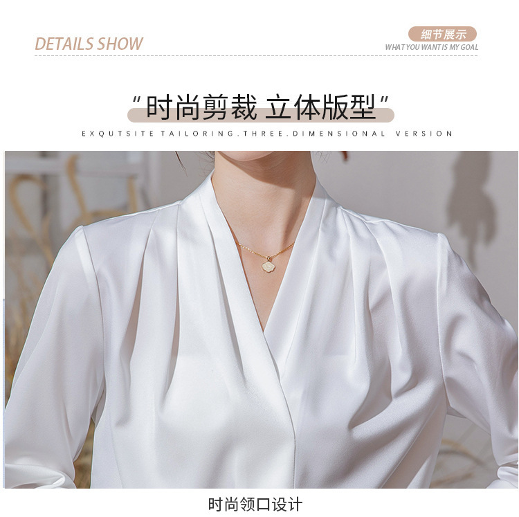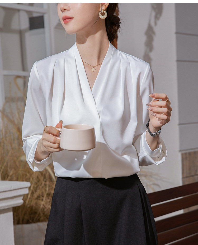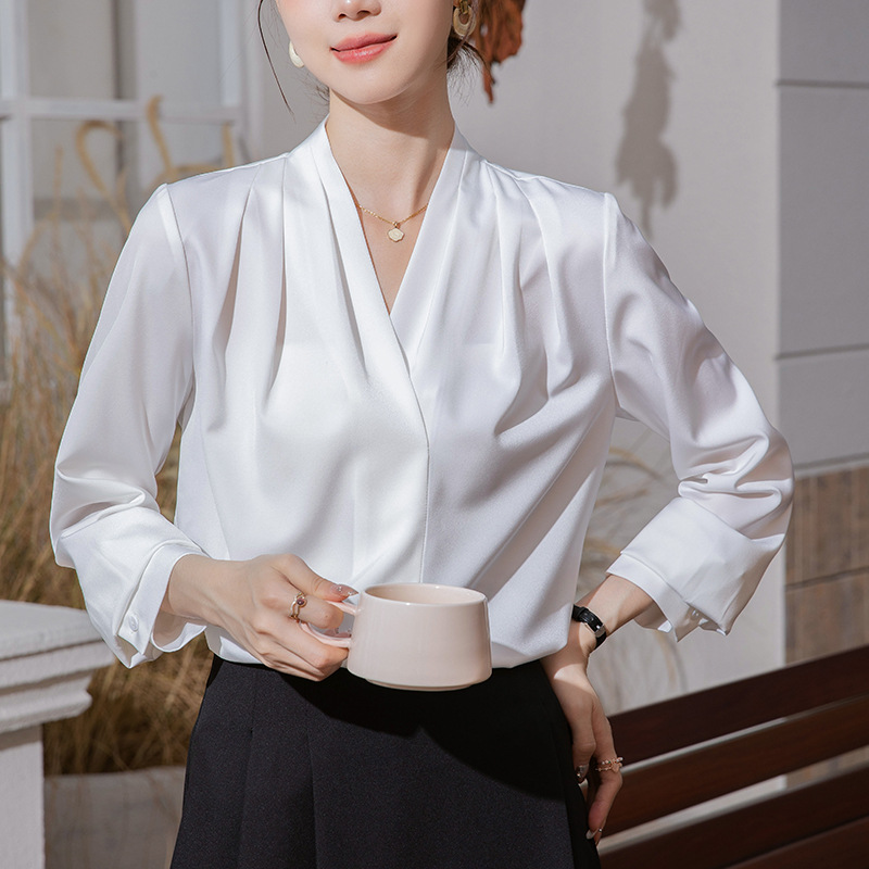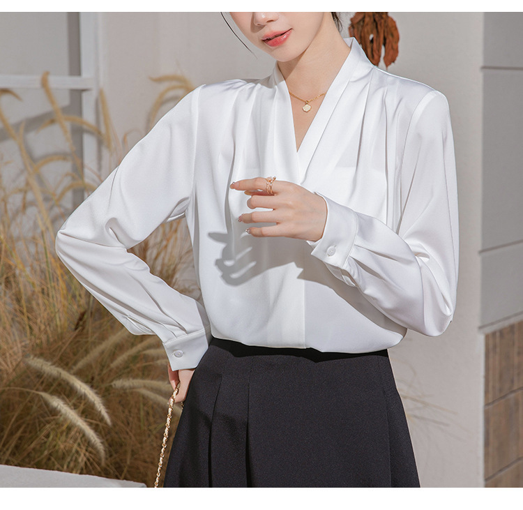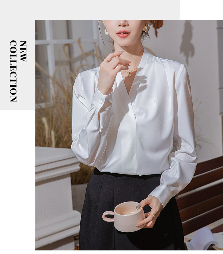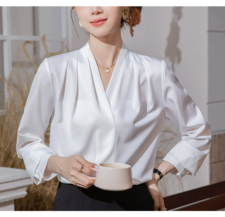 블루 그레이 V 넥 셔츠 여성용 긴팔 가을 착용 라이트 성숙한 스타일 직장 통근 교육 경력 입고 인터뷰 원피스스토어 가기