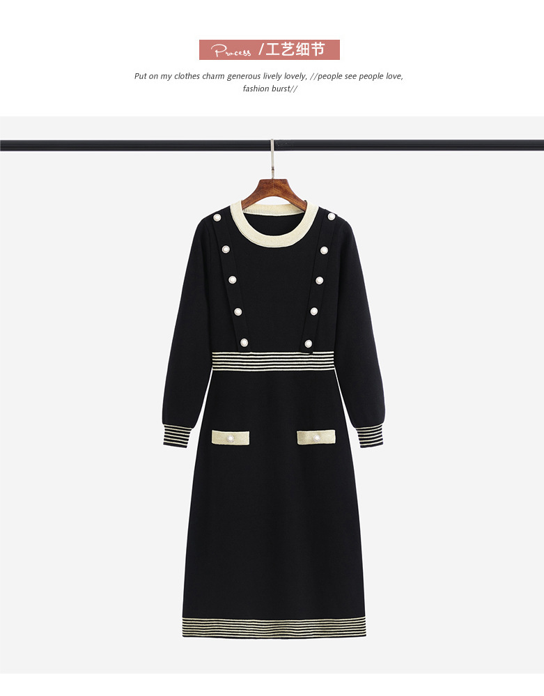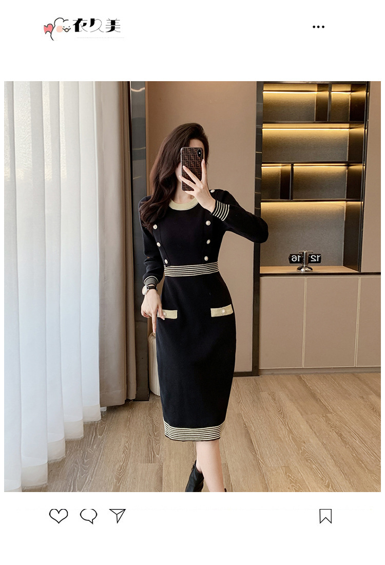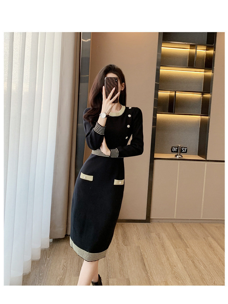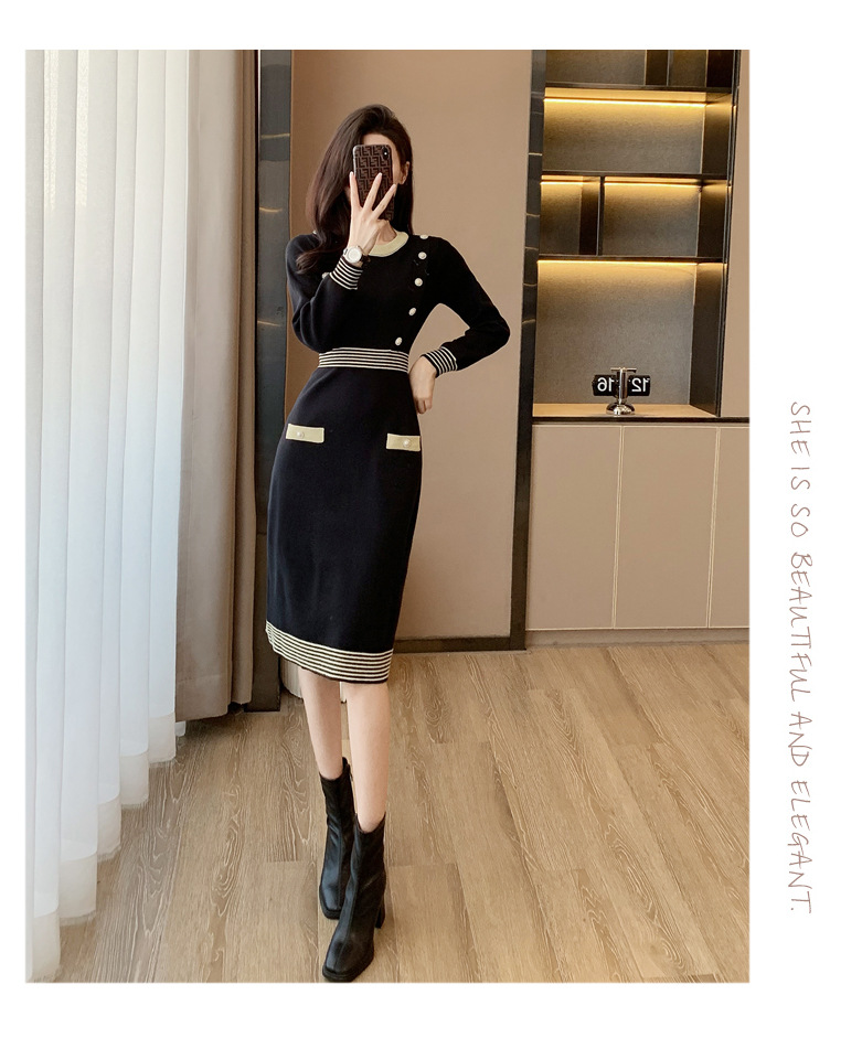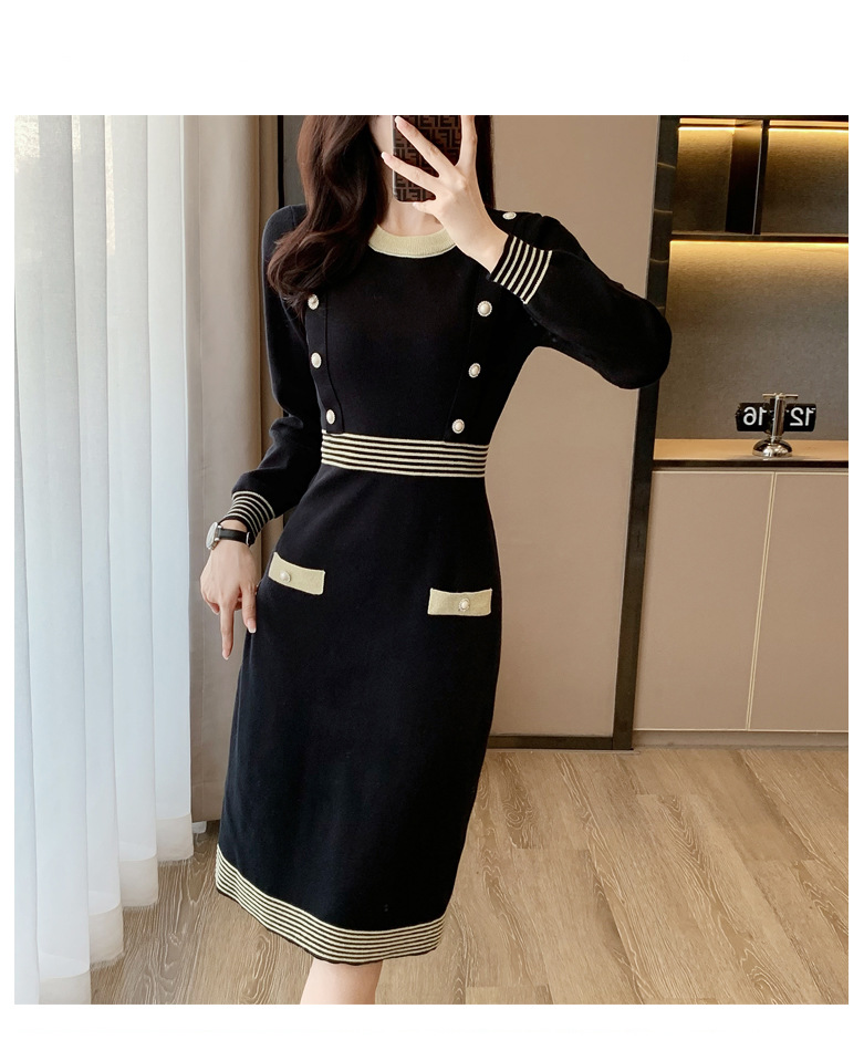 하이 엔드 가을과 겨울 여성의 작은 샤넬 스타일 긴팔 크루 넥 니트 원피스 엉덩이 중간 길이의 보토 밍 스웨터 원피스스토어 가기