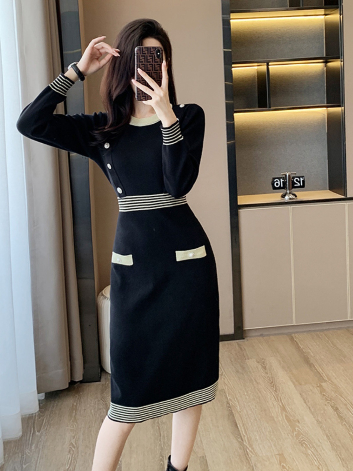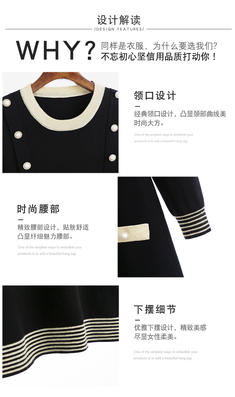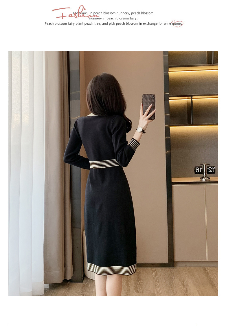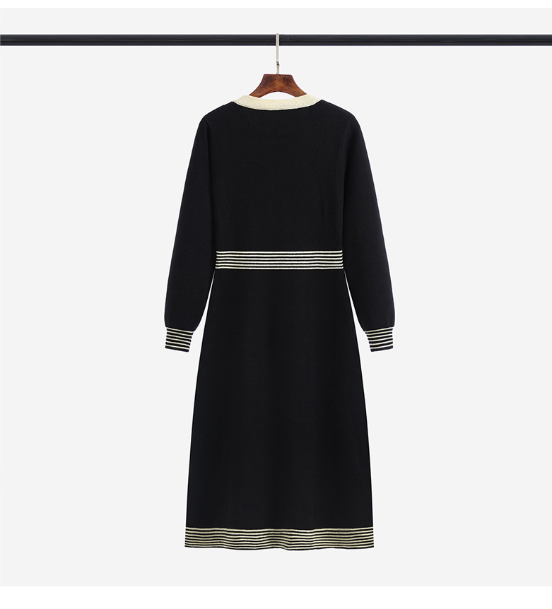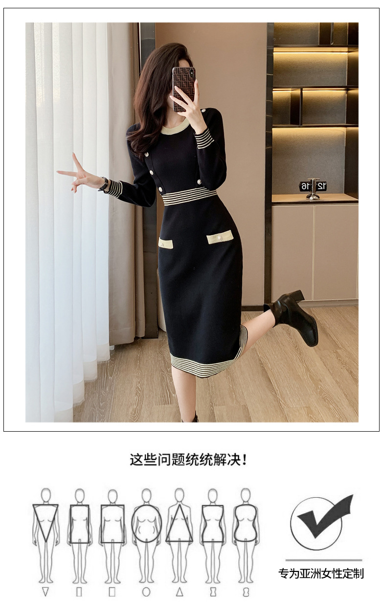 하이 엔드 가을과 겨울 여성의 작은 샤넬 스타일 긴팔 크루 넥 니트 원피스 엉덩이 중간 길이의 보토 밍 스웨터 원피스스토어 가기