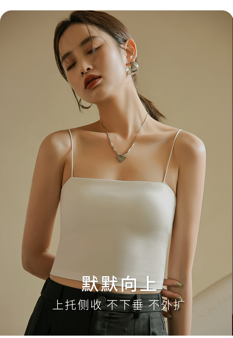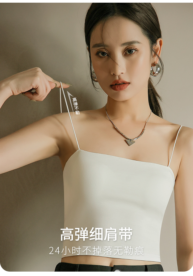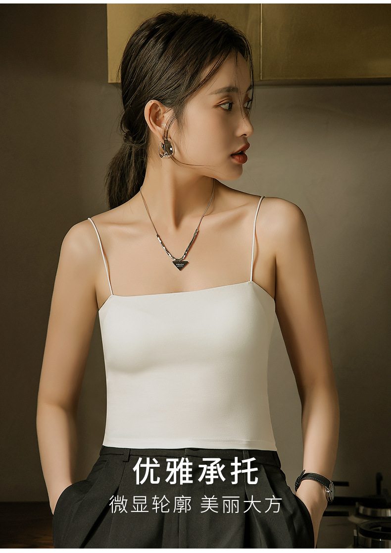 가을 컵 원피스 코튼 느낌 고정 코튼 가슴 패드 아름다운 백 조끼 슬링 여자의 중간 길이베이스 탑