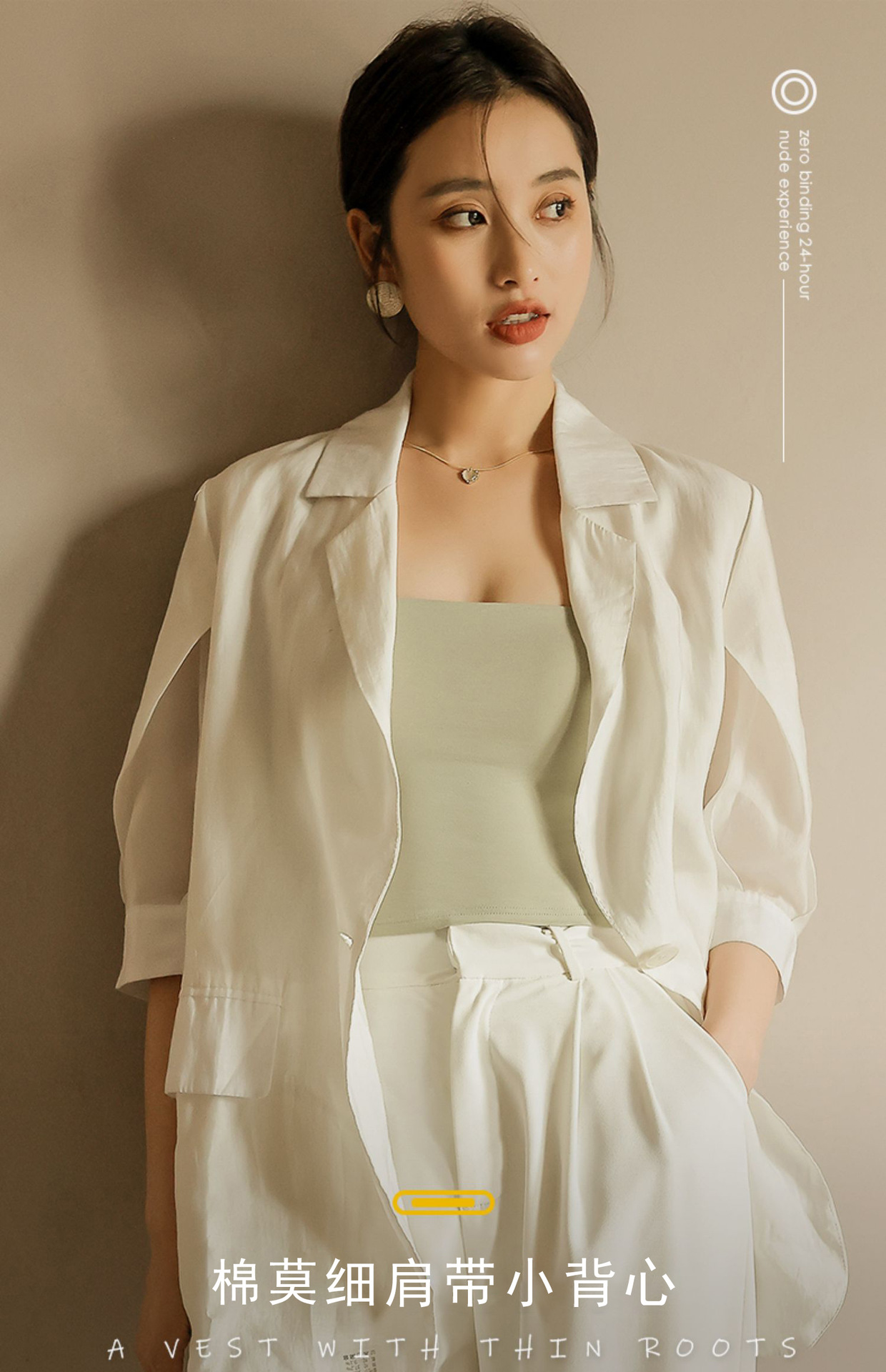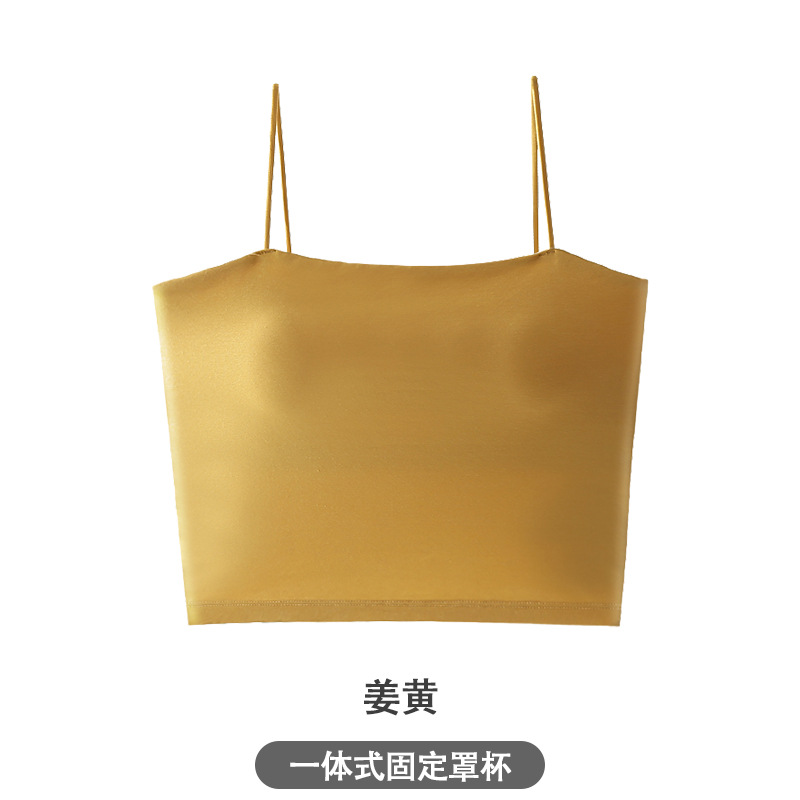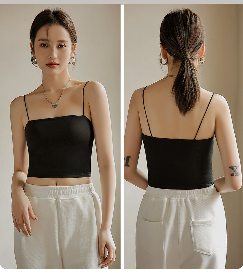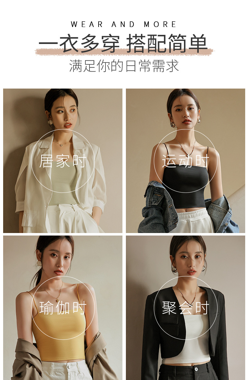 가을 컵 원피스 코튼 느낌 고정 코튼 가슴 패드 아름다운 백 조끼 슬링 여자의 중간 길이베이스 탑