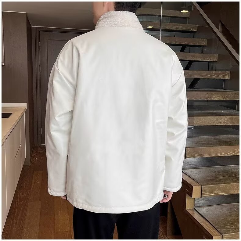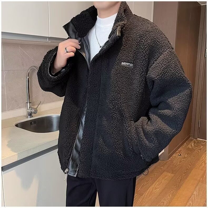 남성용 가을 겨울 양면 양털 스플라이싱 면 재킷 스탠드 칼라 재킷 루즈핏 플러스 벨벳 보온 면 의류 트렌디스토어 가기