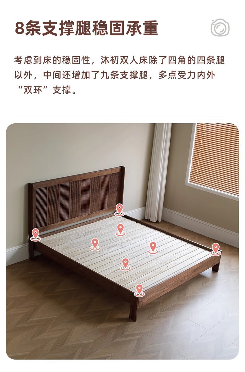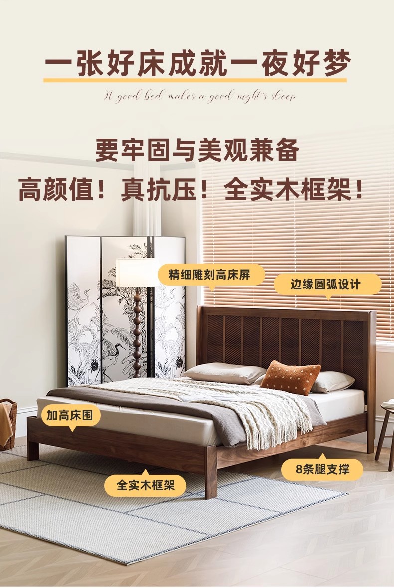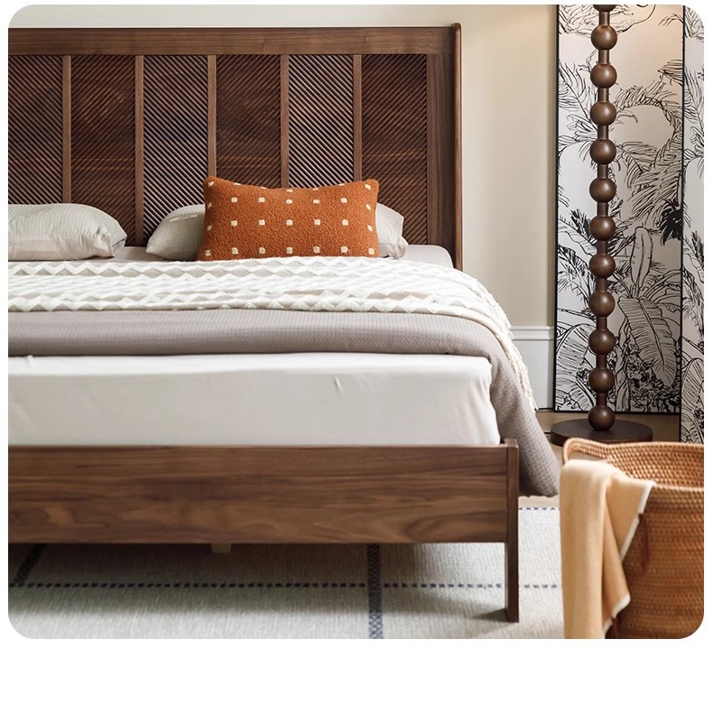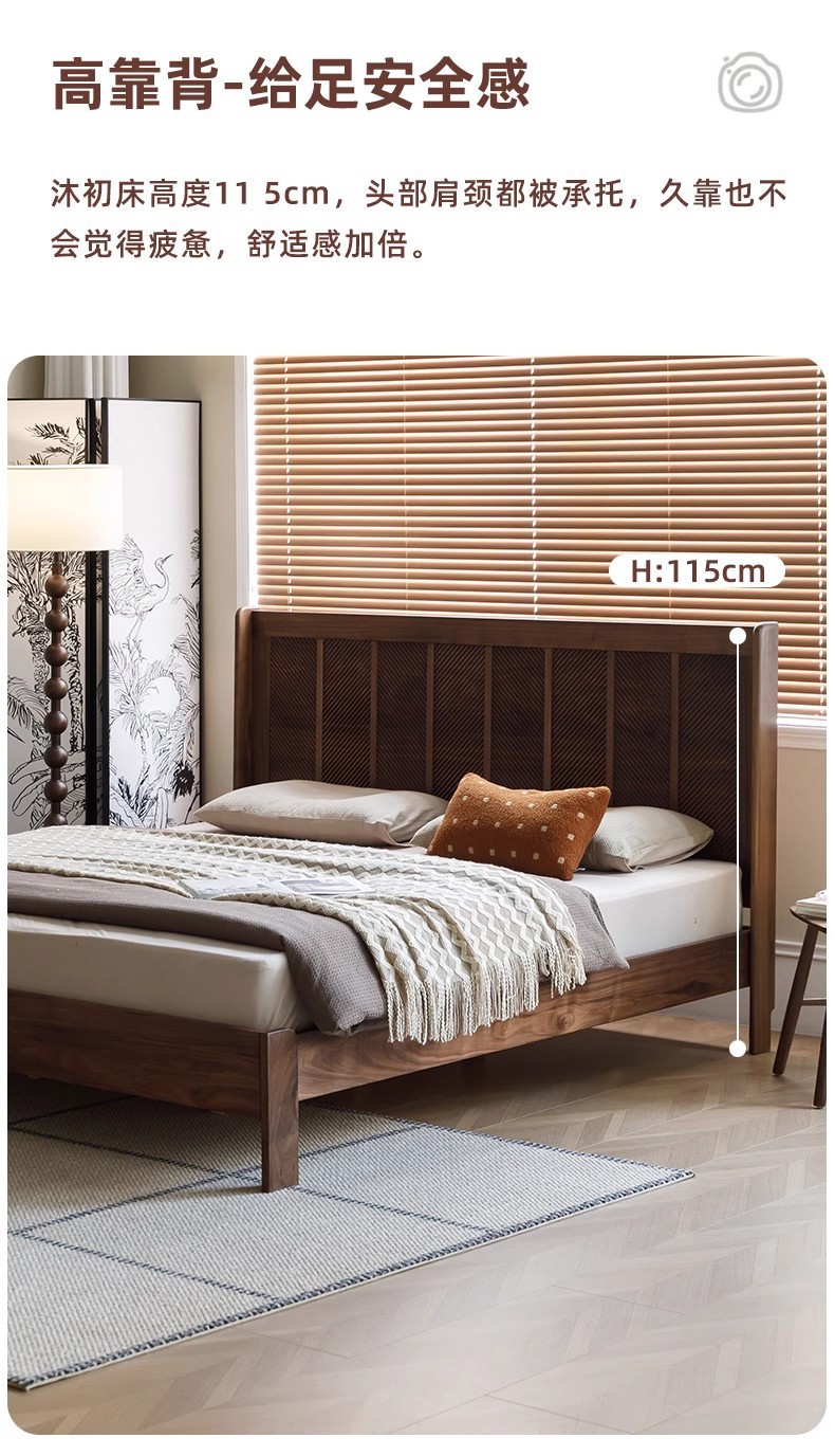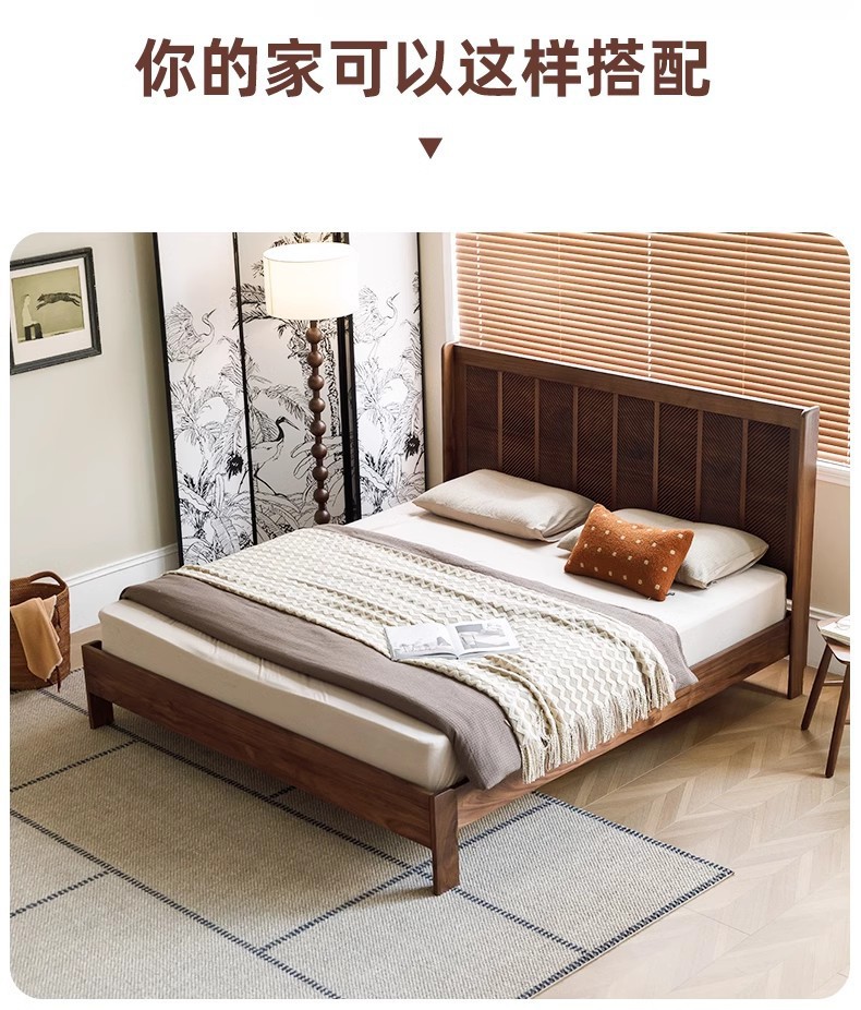 북미 블랙 호두 마스터 침실 1.8 m 더블 침대 현대 간단한 북유럽 솔리드 우드 체리 우드 1.5 통나무 침대스토어 가기