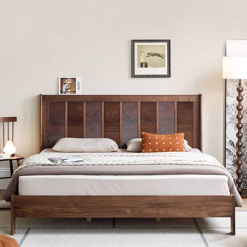 북미 블랙 호두 마스터 침실 1.8 m 더블 침대 현대 간단한 북유럽 솔리드 우드 체리 우드 1.5 통나무 침대