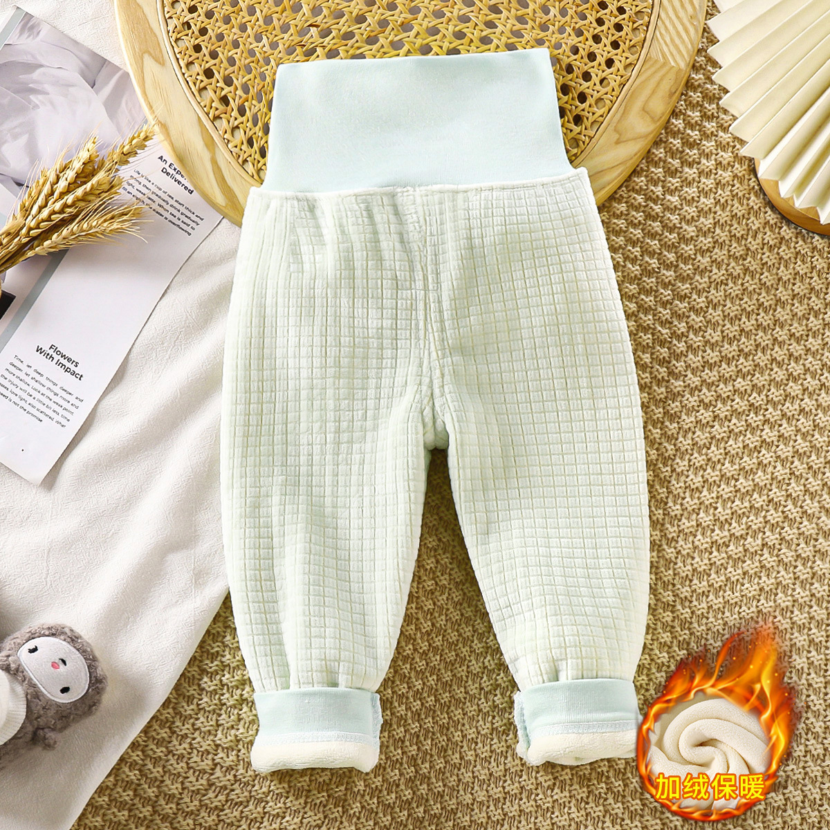 소년 소녀 아기 기모 따뜻한 바지 어린이 두꺼운 바지 내부 착용 높은 허리 배 바지 아기 병 겨울 바지