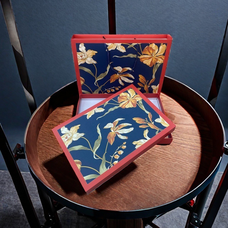 재고 새로운 네이비 스카프 선물 상자 세트 선물 천국과 지구 커버 직사각형 상자 스카프 빈 상자 도매스토어 가기