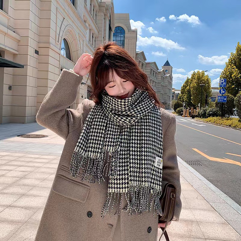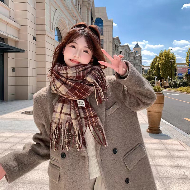 스카프 여자 겨울 두꺼운 격자 무늬 한국식 긴 양면 올 매치 학생 니트 술 목도리 이중 목적 가을 스카프스토어 가기