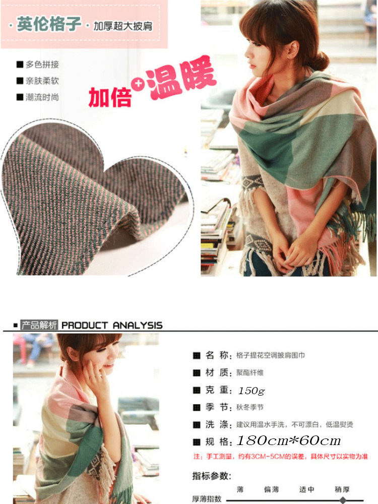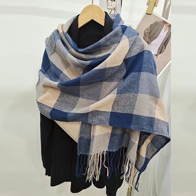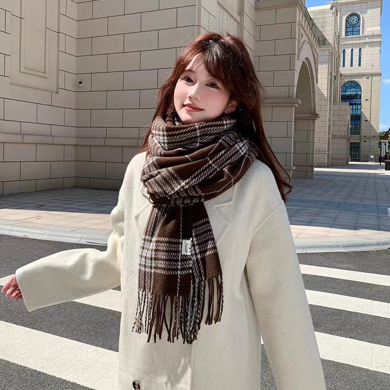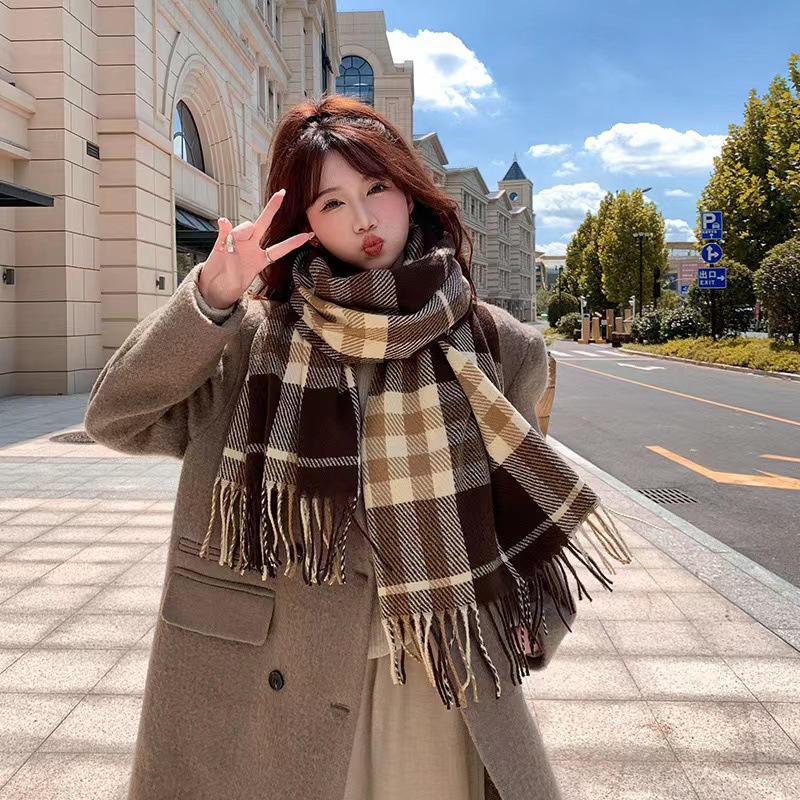 스카프 여자 겨울 두꺼운 격자 무늬 한국식 긴 양면 올 매치 학생 니트 술 목도리 이중 목적 가을 스카프