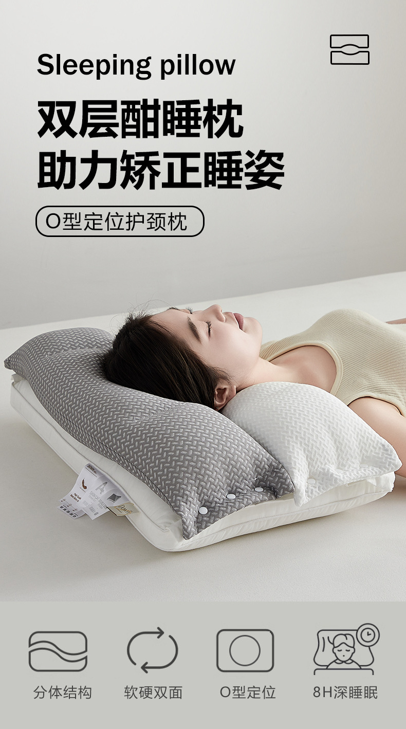 新款双层双层酣睡枕护颈椎助睡眠枕头成人牵引分区定型枕芯一对装