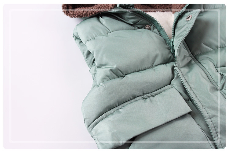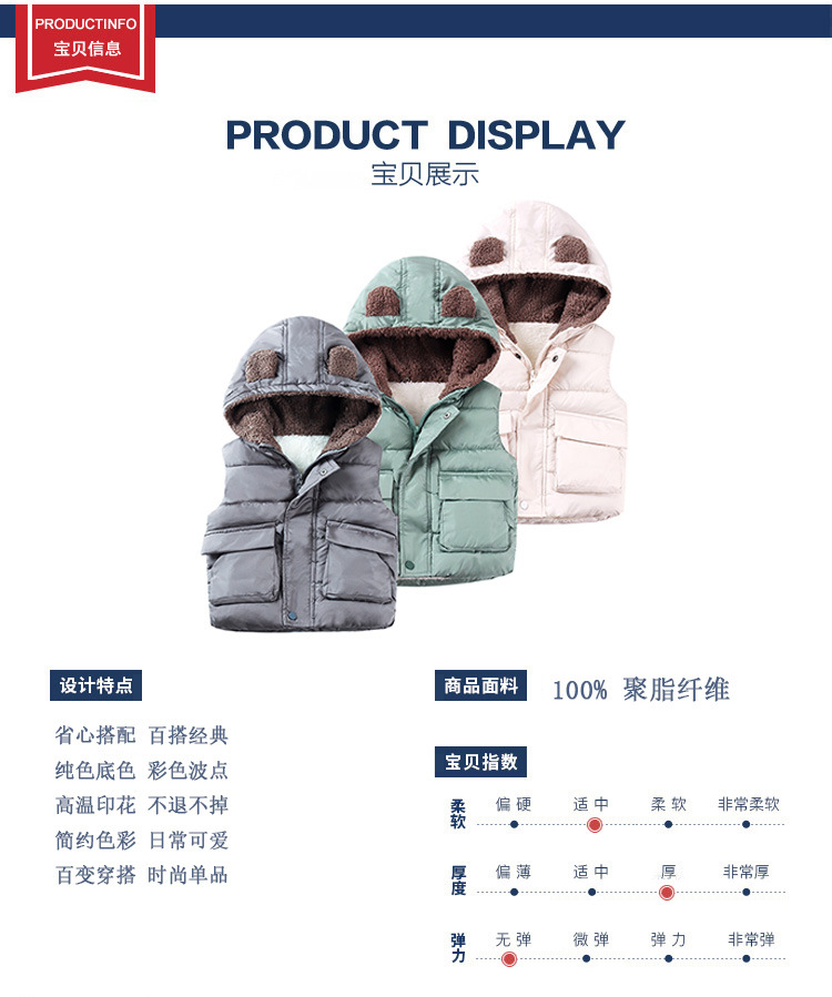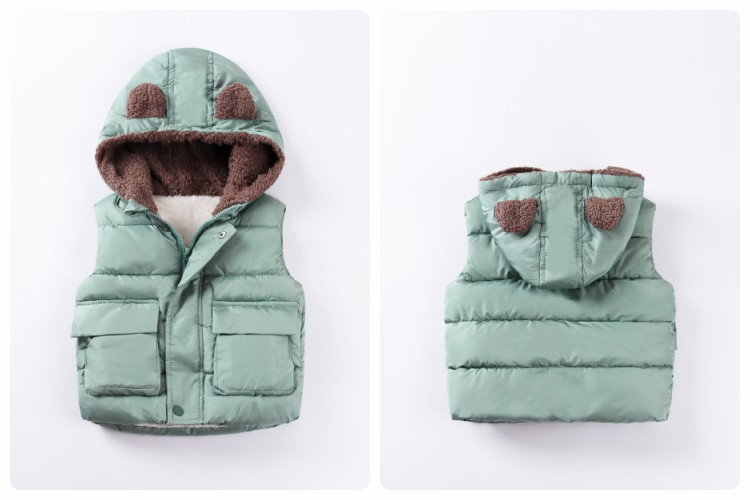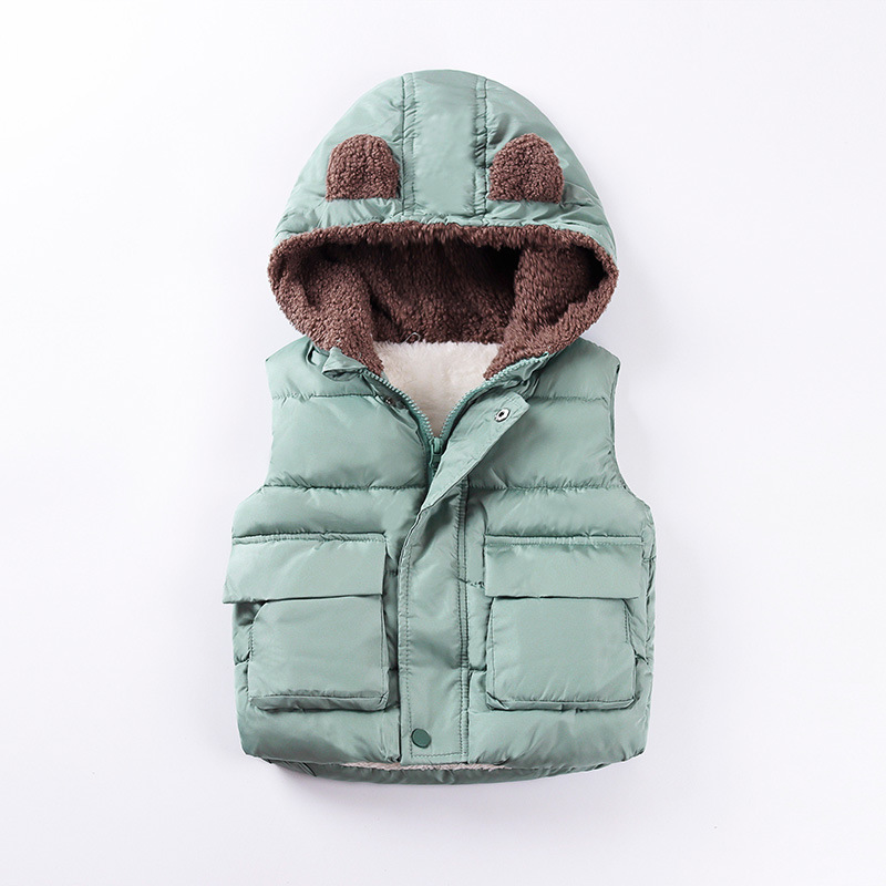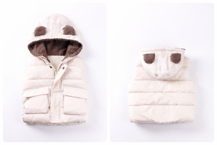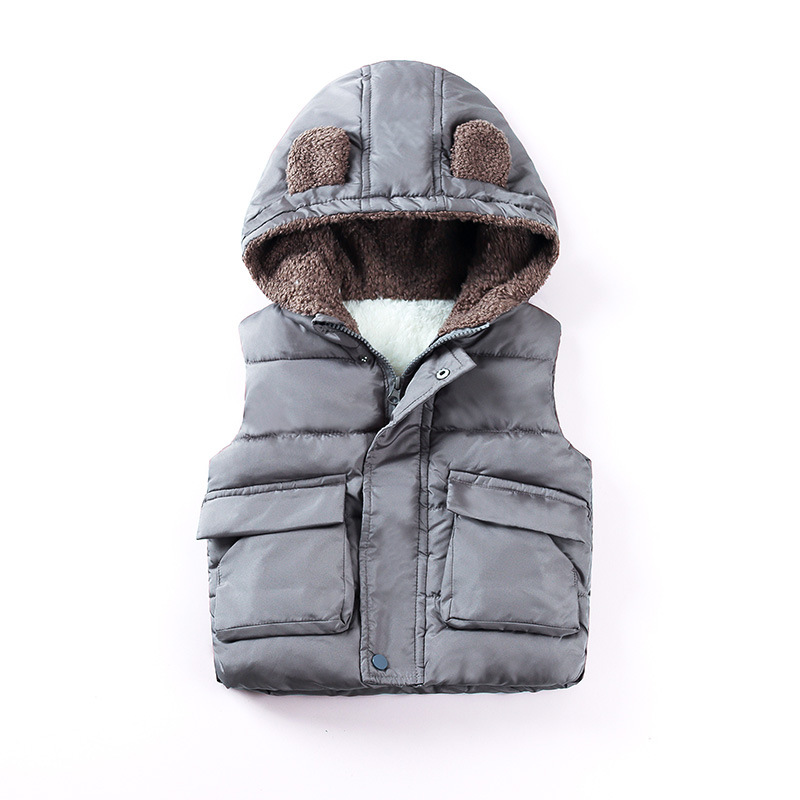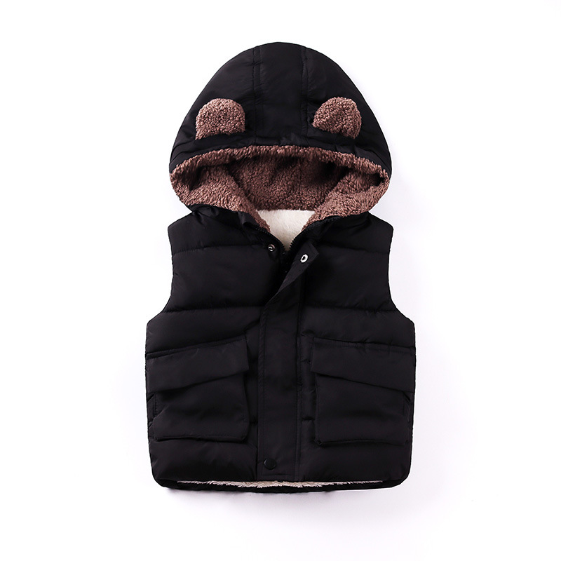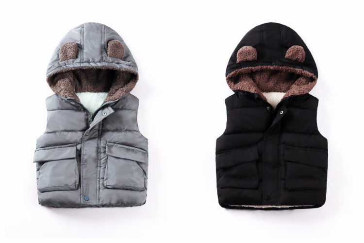 가을 겨울 아동복 25종 신상품 곰돌이 후드 조끼 플러스 벨벳 두꺼운 소년 소녀용 지퍼 면 조끼