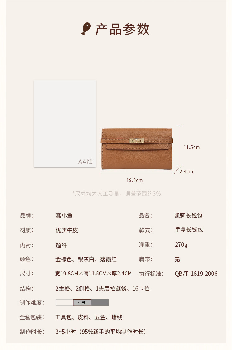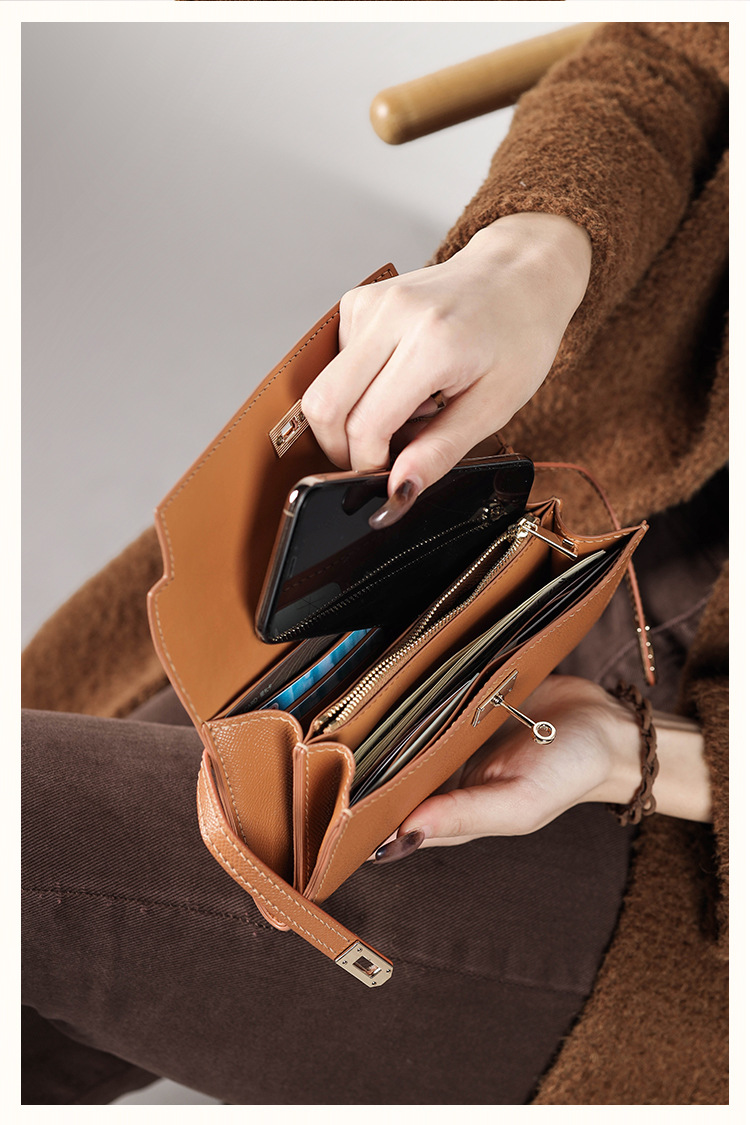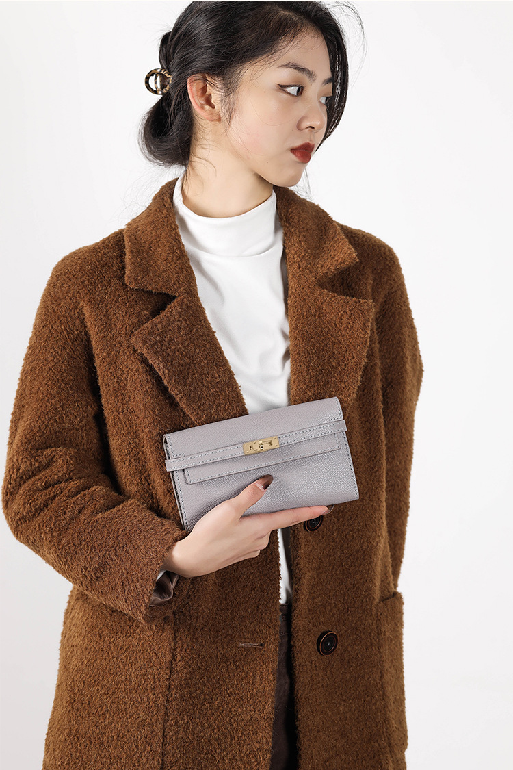 멍청한 물고기 손으로 꿰매는 Diy 소재 가방 켈리 진짜 카우보이 지갑 긴 수평 여성용 핸드 헬드 코인 클립 카드 가방