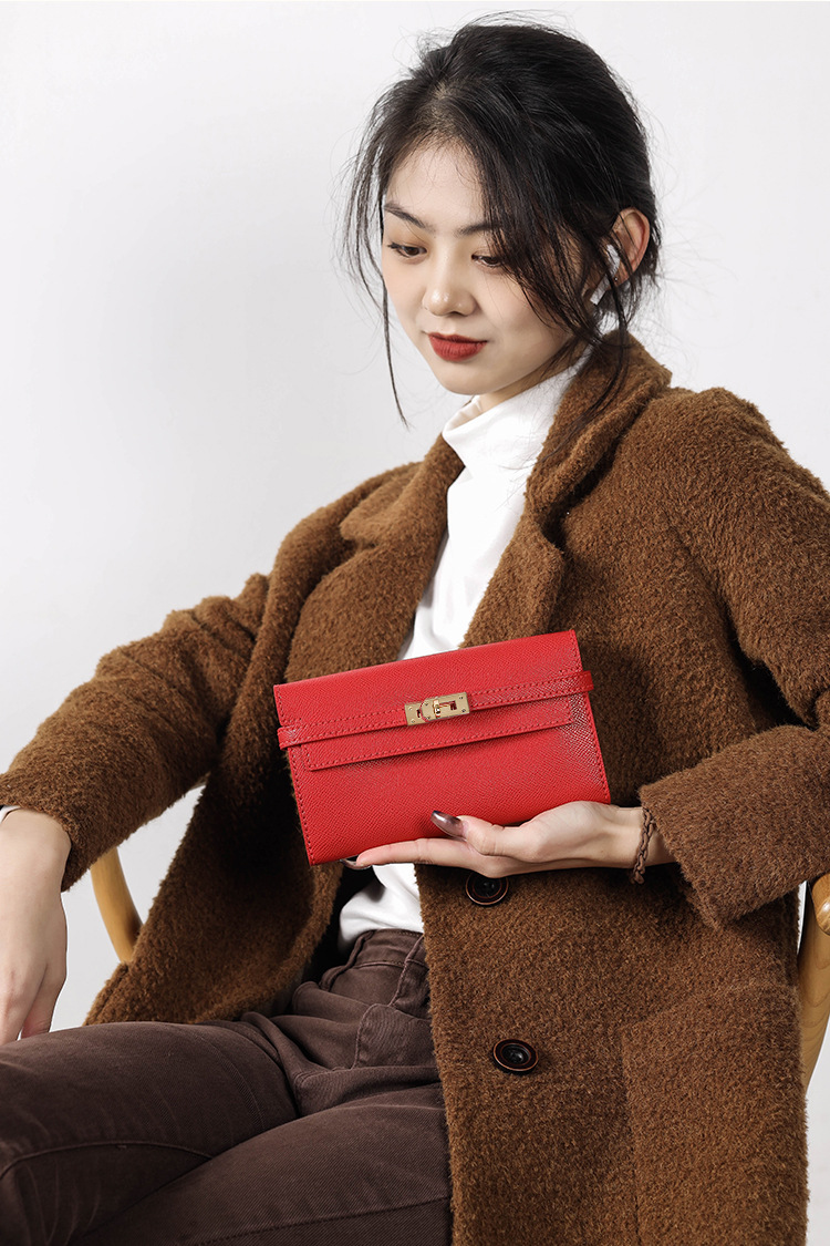 멍청한 물고기 손으로 꿰매는 Diy 소재 가방 켈리 진짜 카우보이 지갑 긴 수평 여성용 핸드 헬드 코인 클립 카드 가방스토어 가기