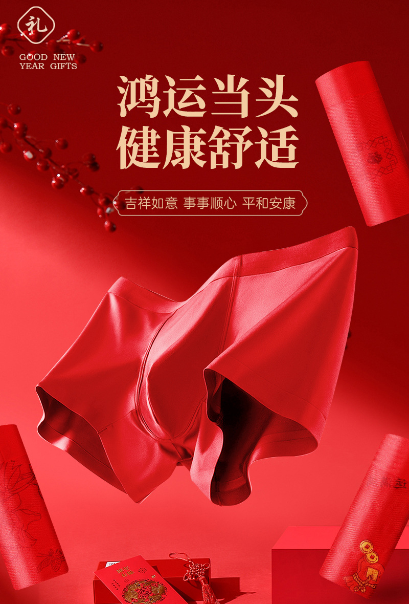트레이스 레드 남성 속옷 레드 브닝 니안 드래곤 년 웨딩 모달 복서 반바지 선물 상자스토어 가기