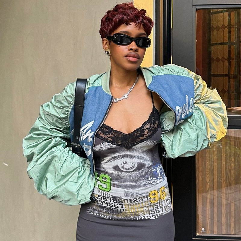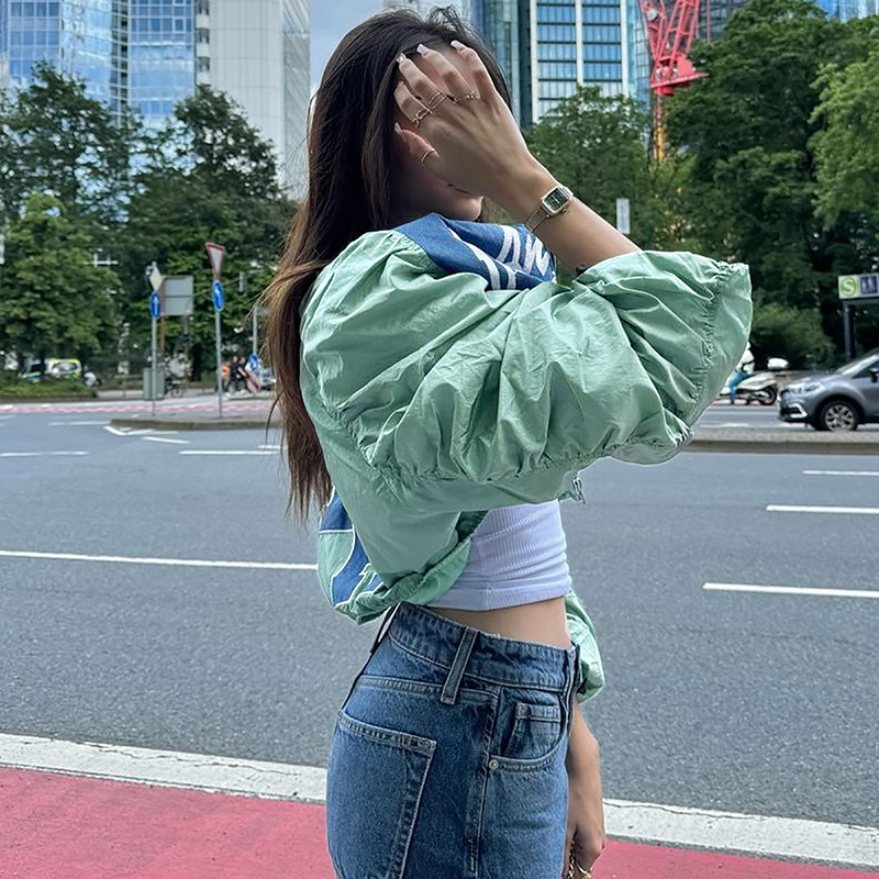 유럽과 미국의 뜨거운 여성의 2024 가을 패션 오토바이 스타일 거리 사진 편지 인쇄 카디건 재킷 코트 여성 도매스토어 가기