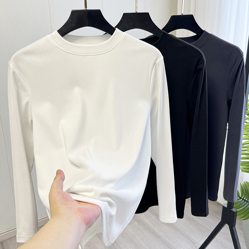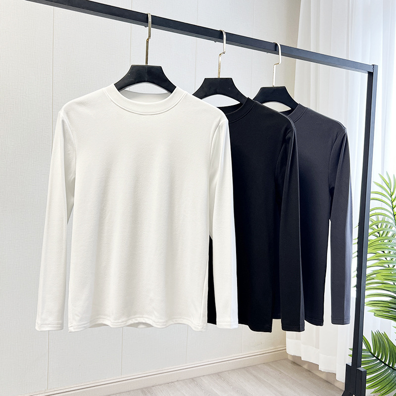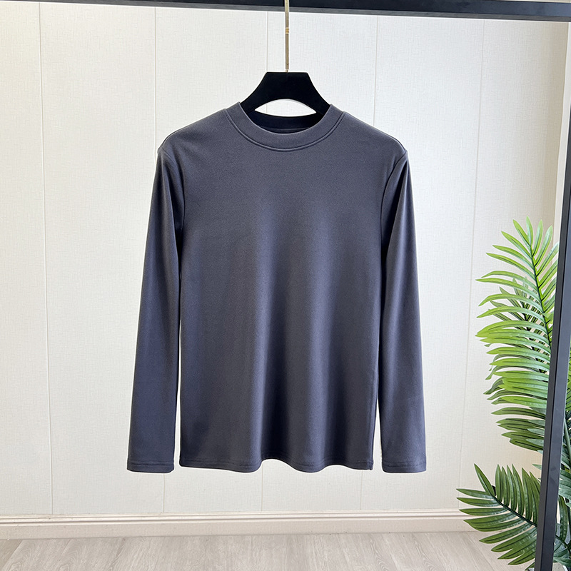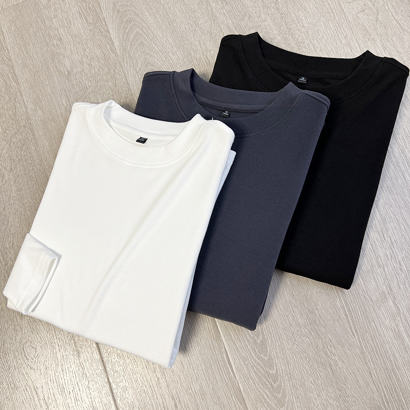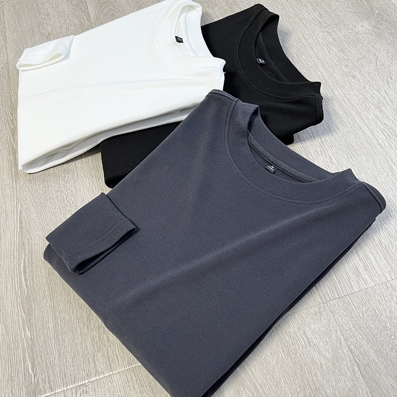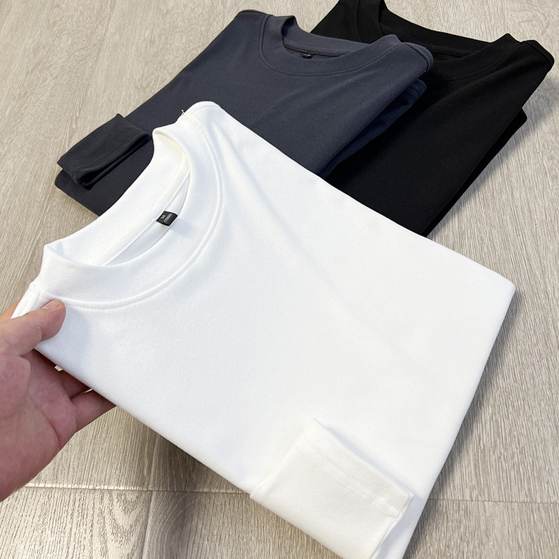 양면 벨벳 더 간단하고 관대 한 둥근 목 풀오버 가을 단색 남성베이스 긴팔 티셔츠스토어 가기