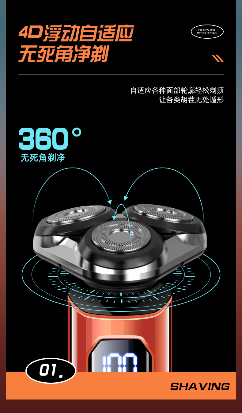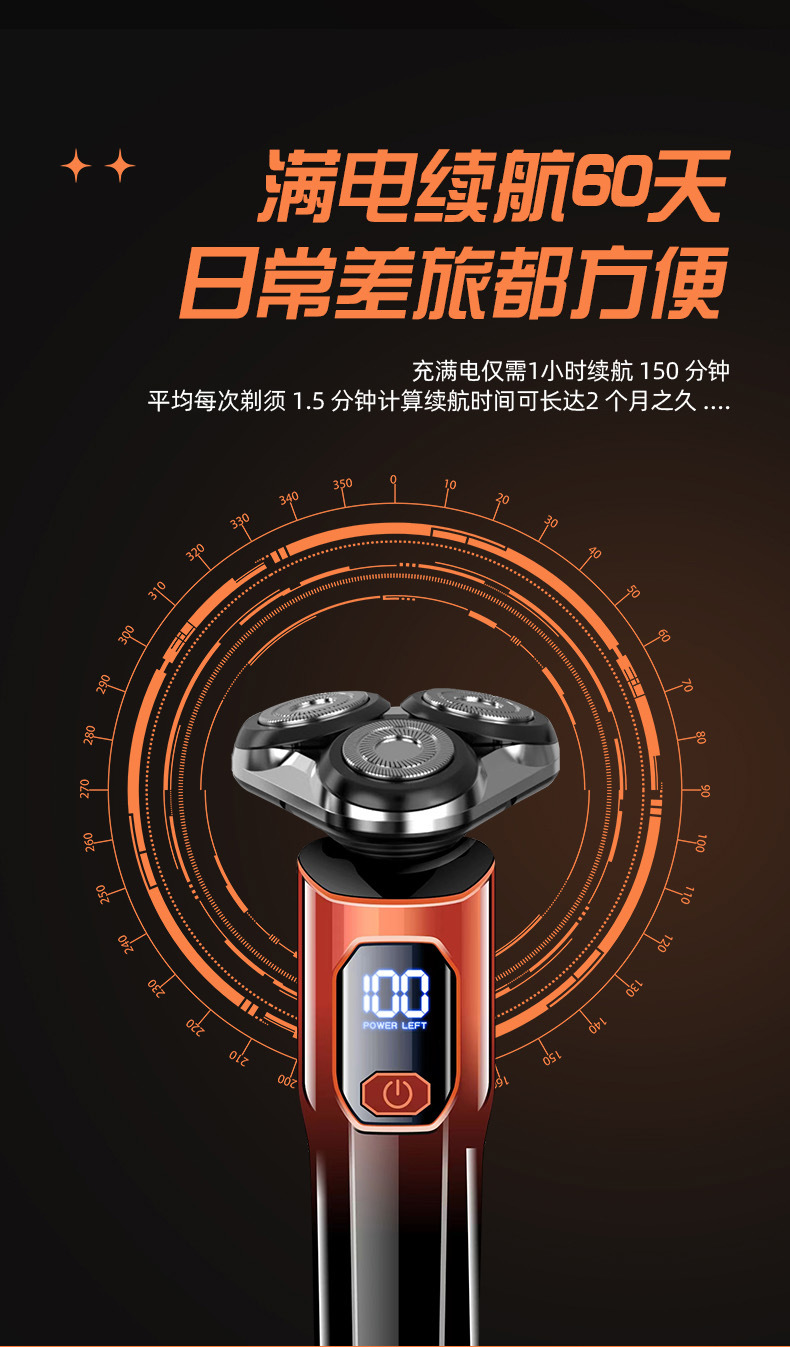 새로운 전기 면도기 USB 충전식 자기 디지털 디스플레이 3 헤드 남자의 휴대용 충전식 면도기