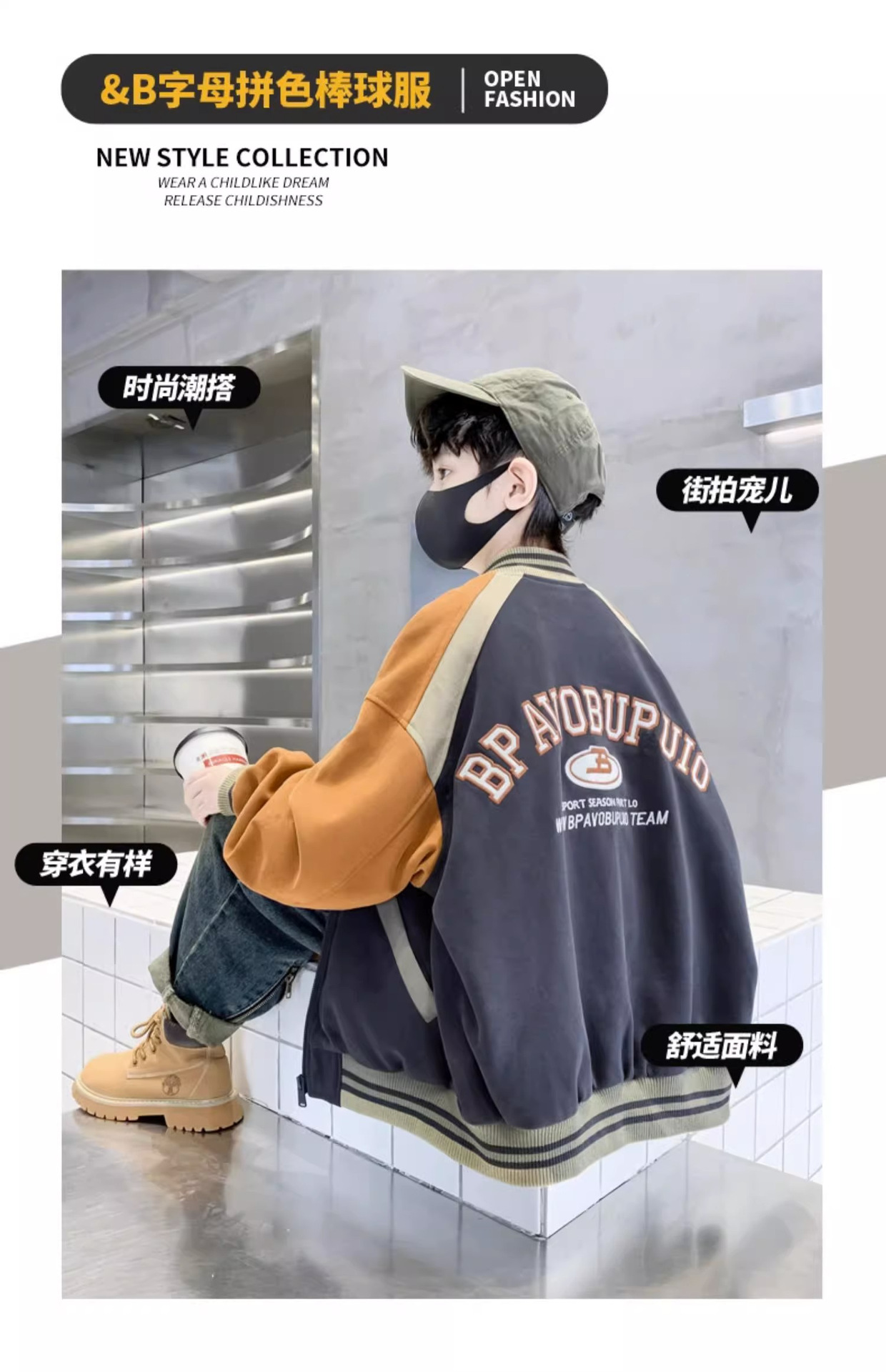 더피 잘생긴 소년의 자켓 야구 세트 봄과 가을 2024 새로운 어린이 가을 스웨트 셔츠 큰 소년의 가을 재킷스토어 가기