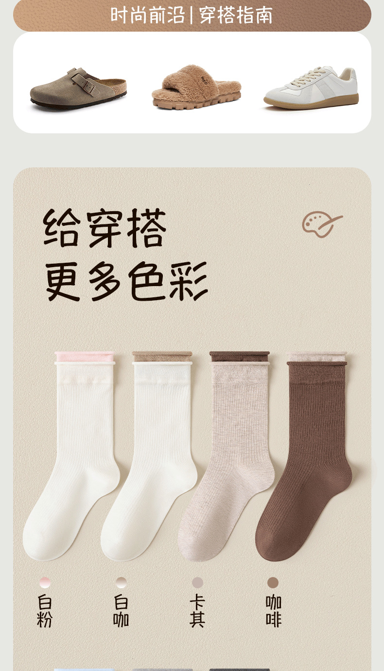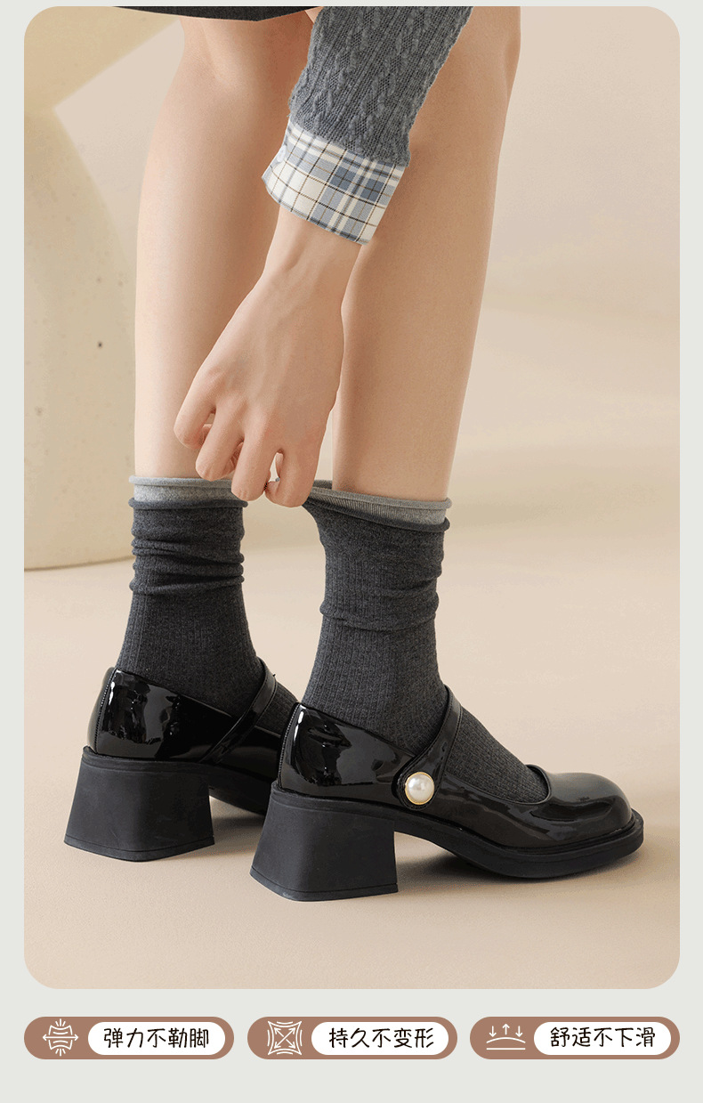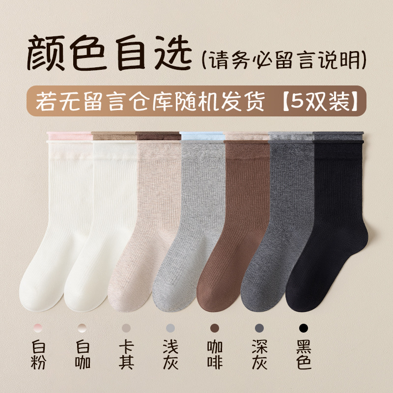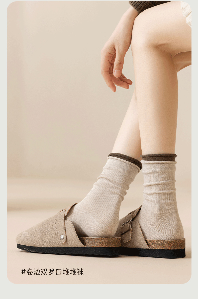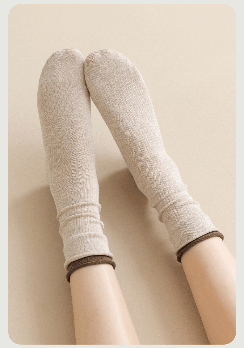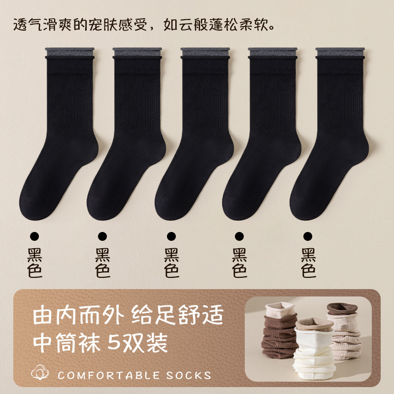가을과 겨울 여성의 단색면 양말 더블 Luo Kou 컬링 미드 튜브 양말 Maillard Burken 신발 뼈없는 감금 양말스토어 가기
