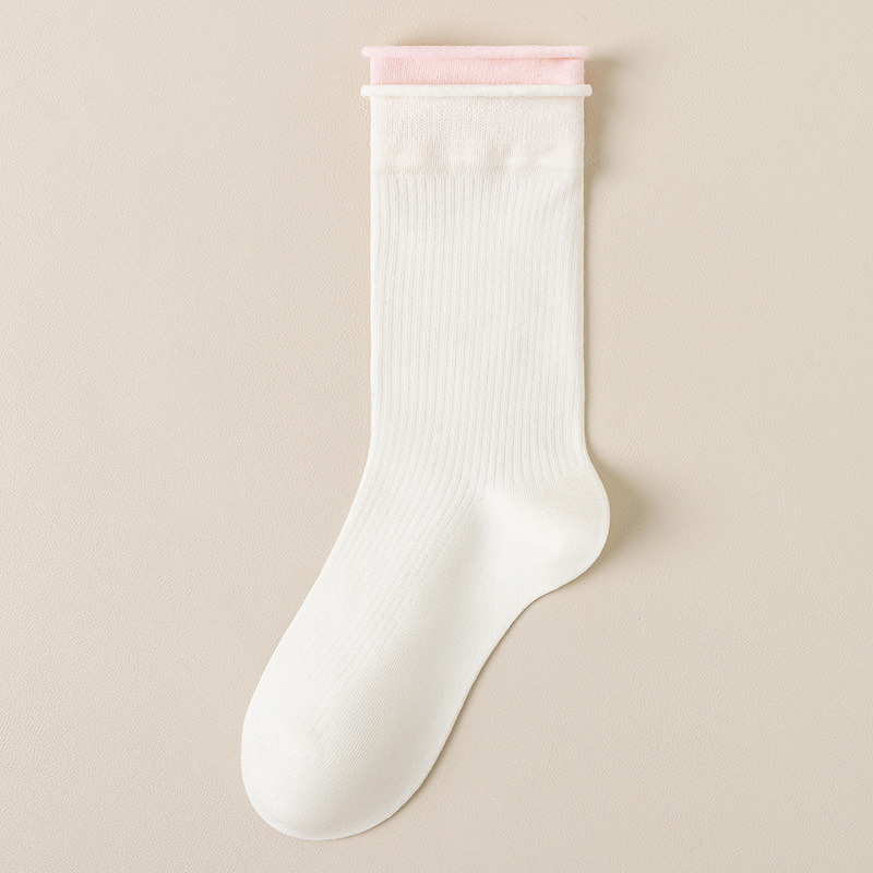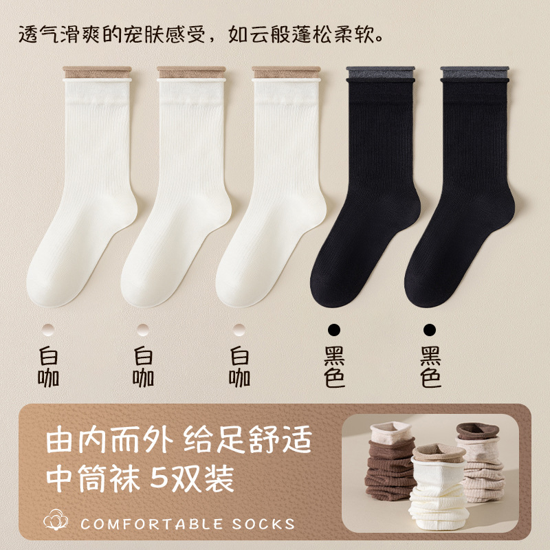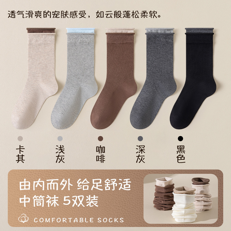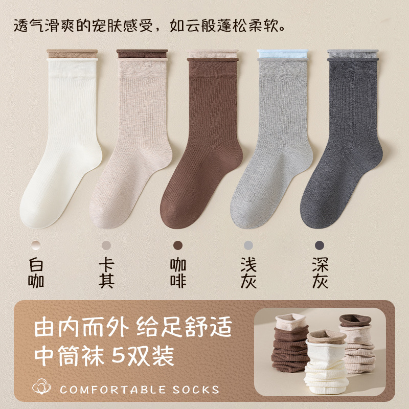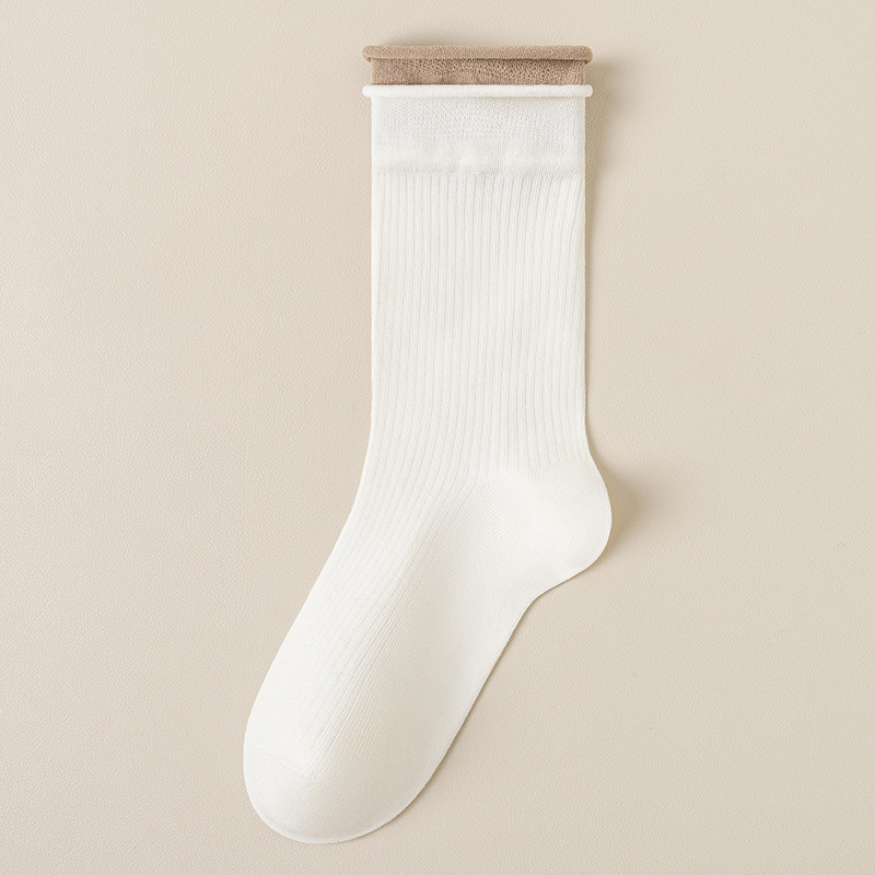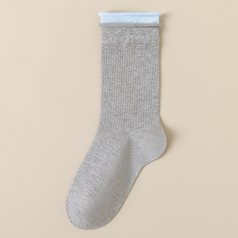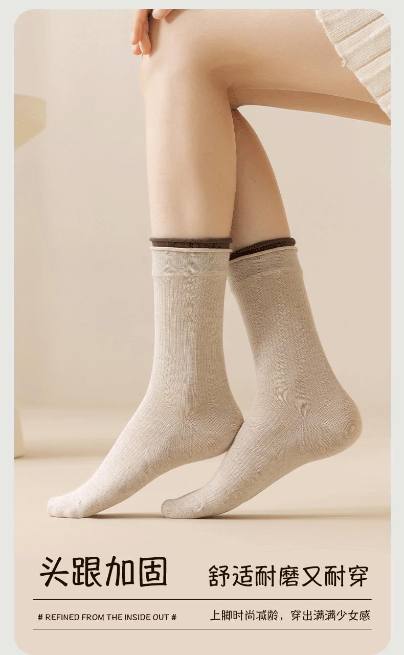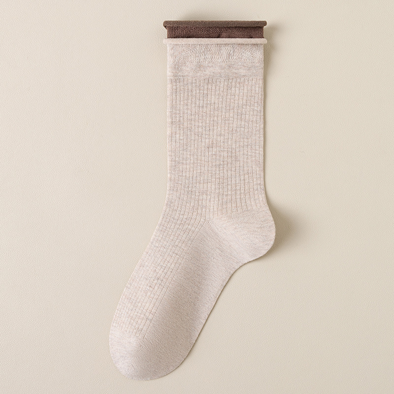 가을과 겨울 여성의 단색면 양말 더블 Luo Kou 컬링 미드 튜브 양말 Maillard Burken 신발 뼈없는 감금 양말스토어 가기