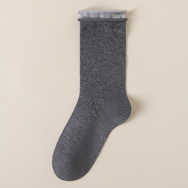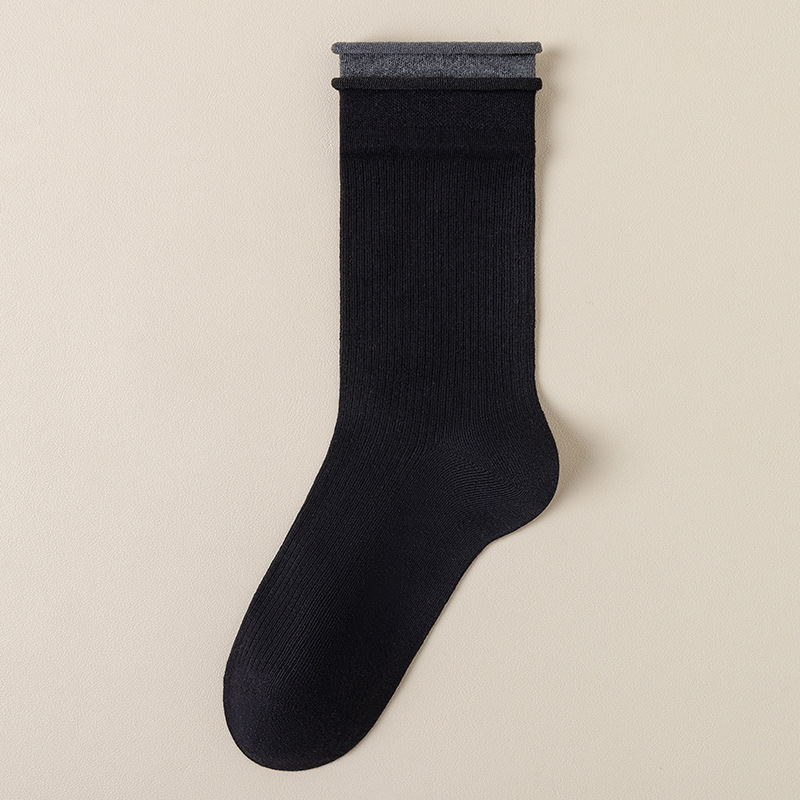 가을과 겨울 여성의 단색면 양말 더블 Luo Kou 컬링 미드 튜브 양말 Maillard Burken 신발 뼈없는 감금 양말