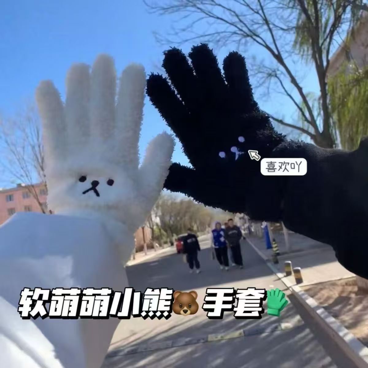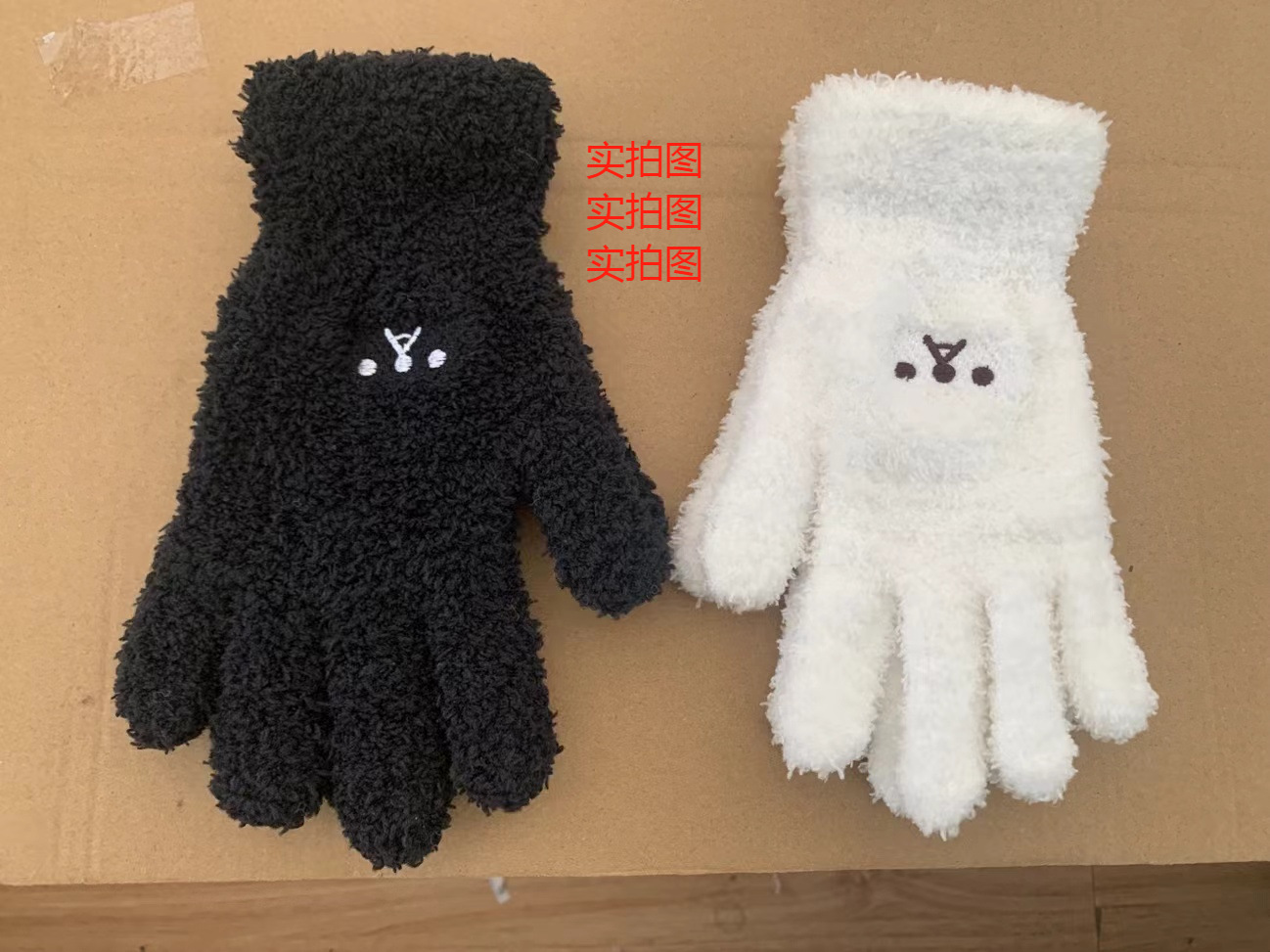 산호 벨벳 자수 장갑, 두꺼운 겨울용 보온 장갑, 만화 캐릭터 방한 야외 사이클링 학생용 성인용 인스타 스타일 방한 장갑스토어 가기