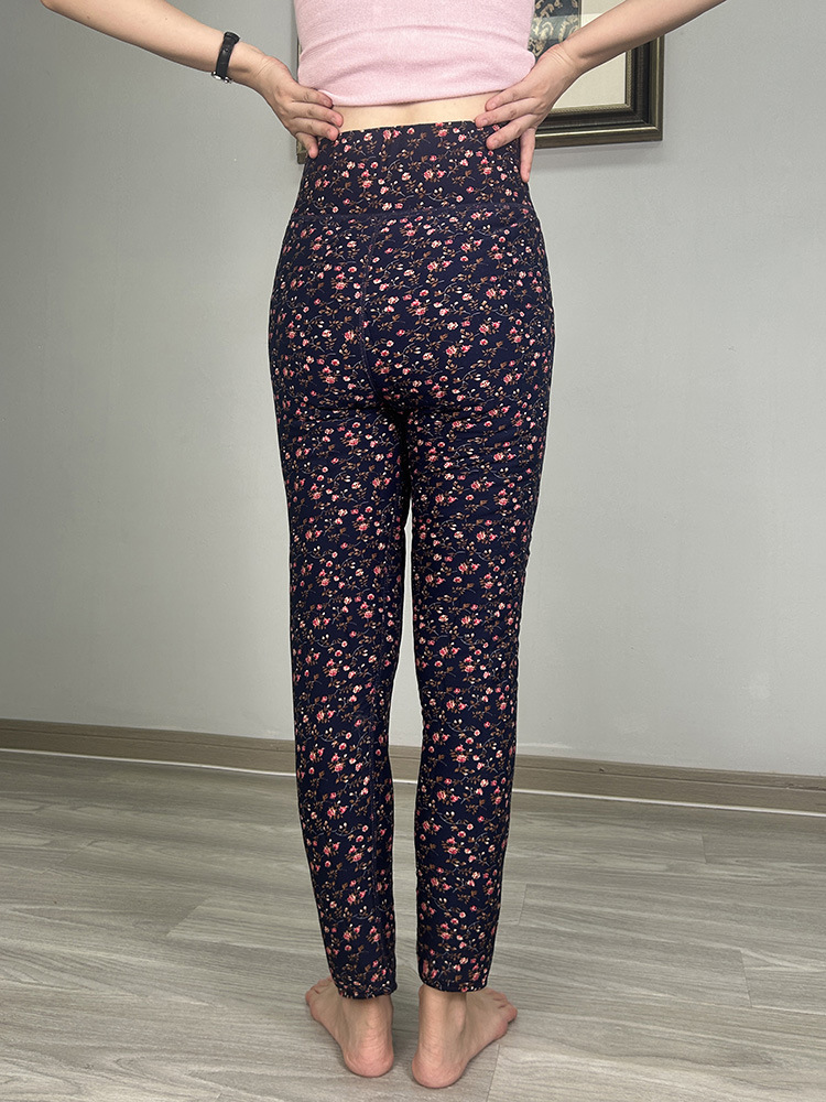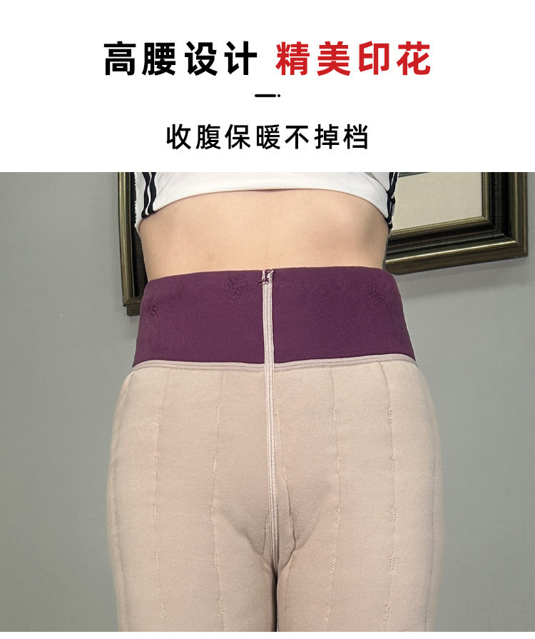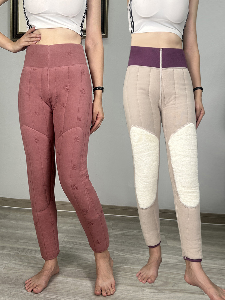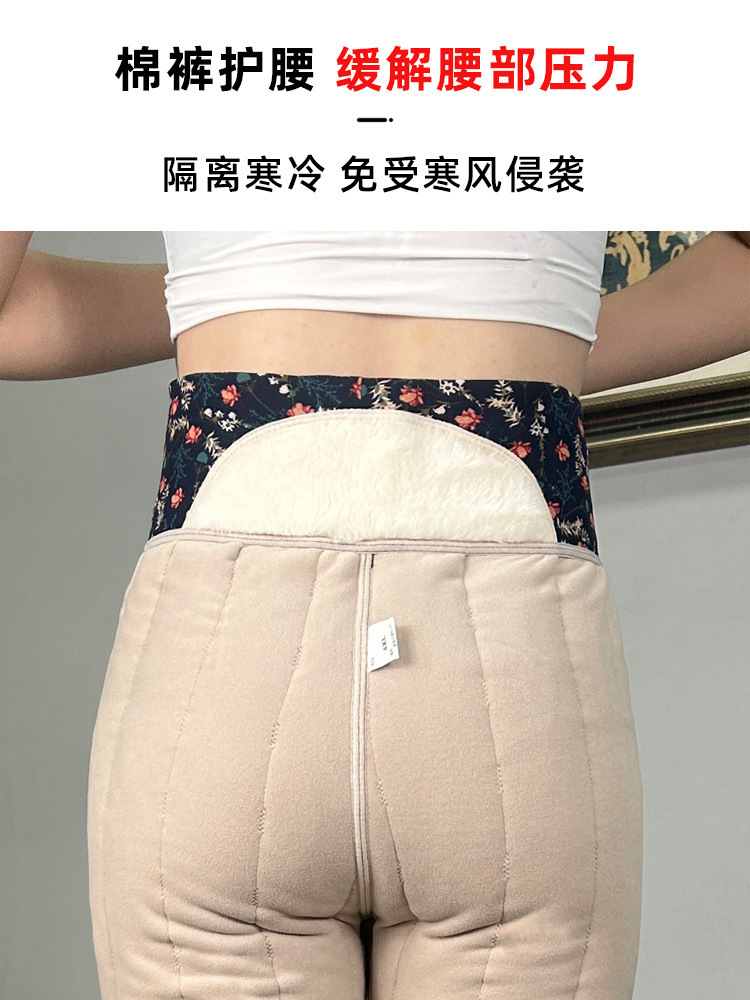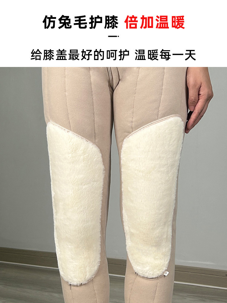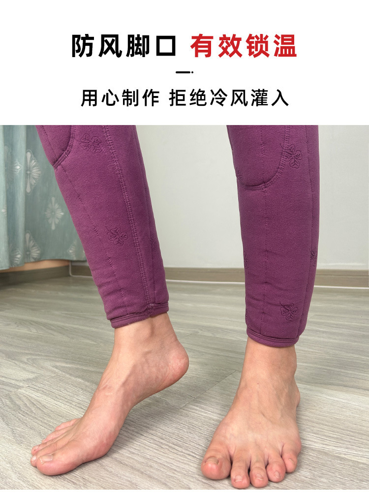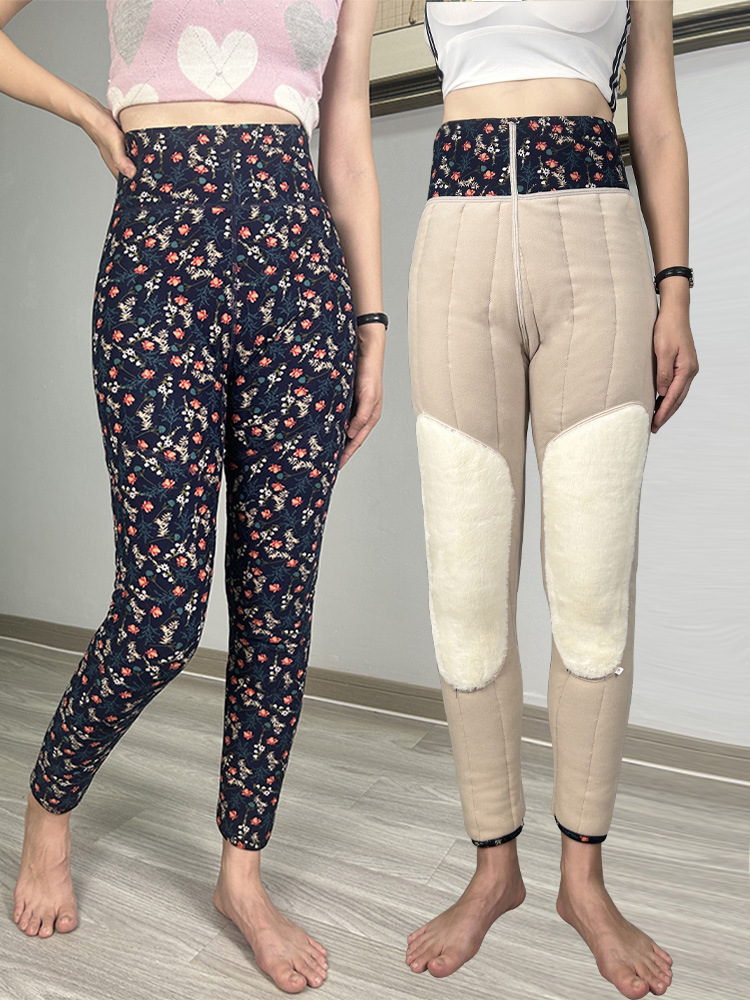 여성용 양모 내부 꽃면 바지 겨울 기모 따뜻하고 편안한 북동쪽 방화 바지 노인을위한 두꺼운 허리 무릎 바지