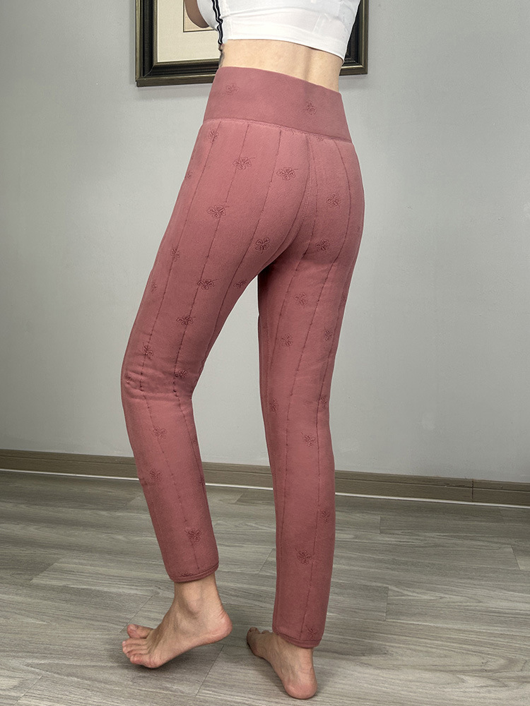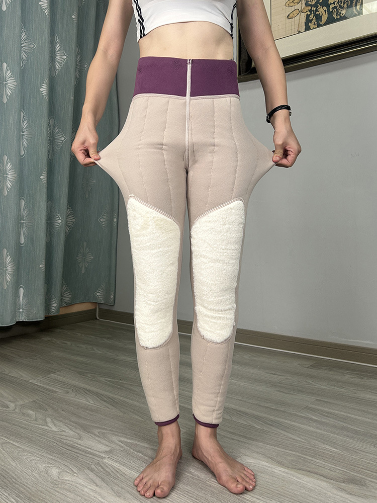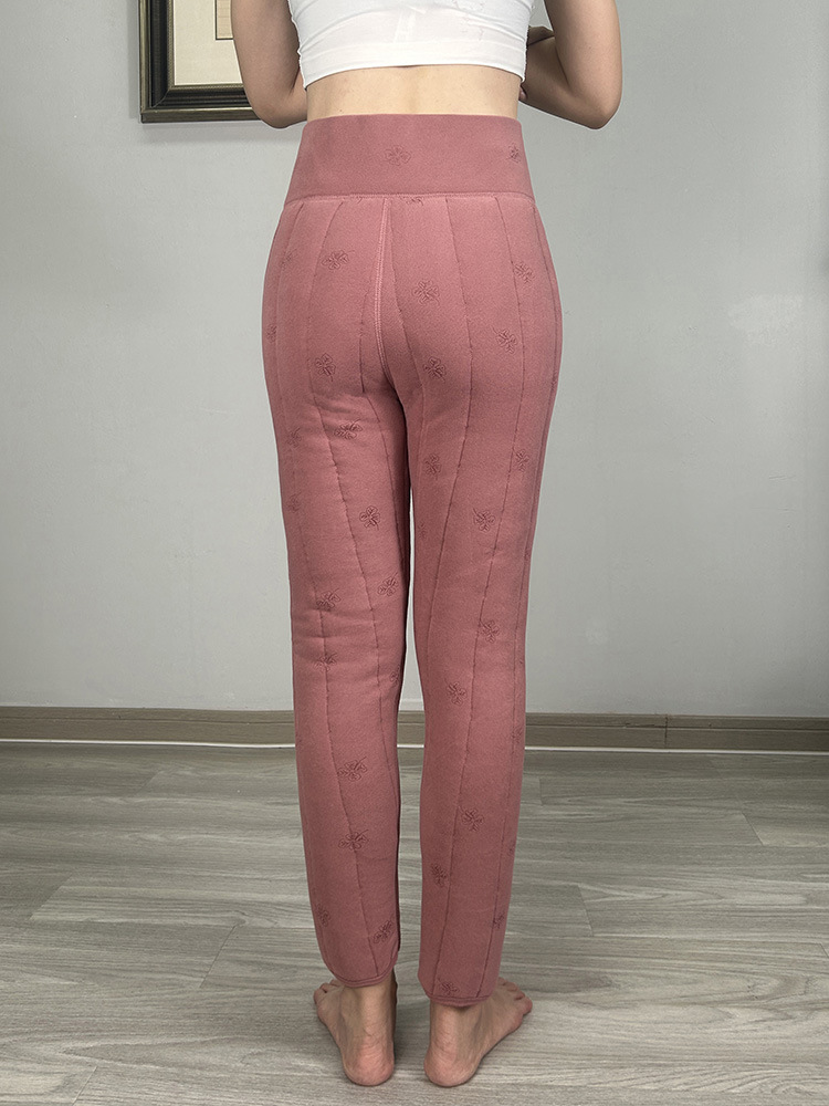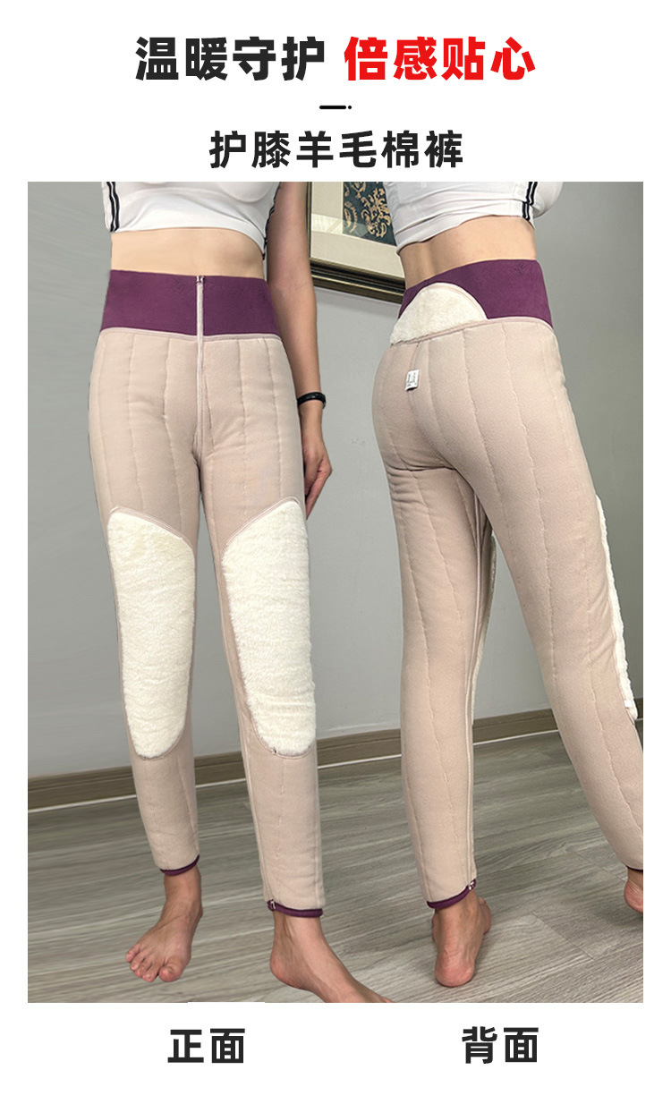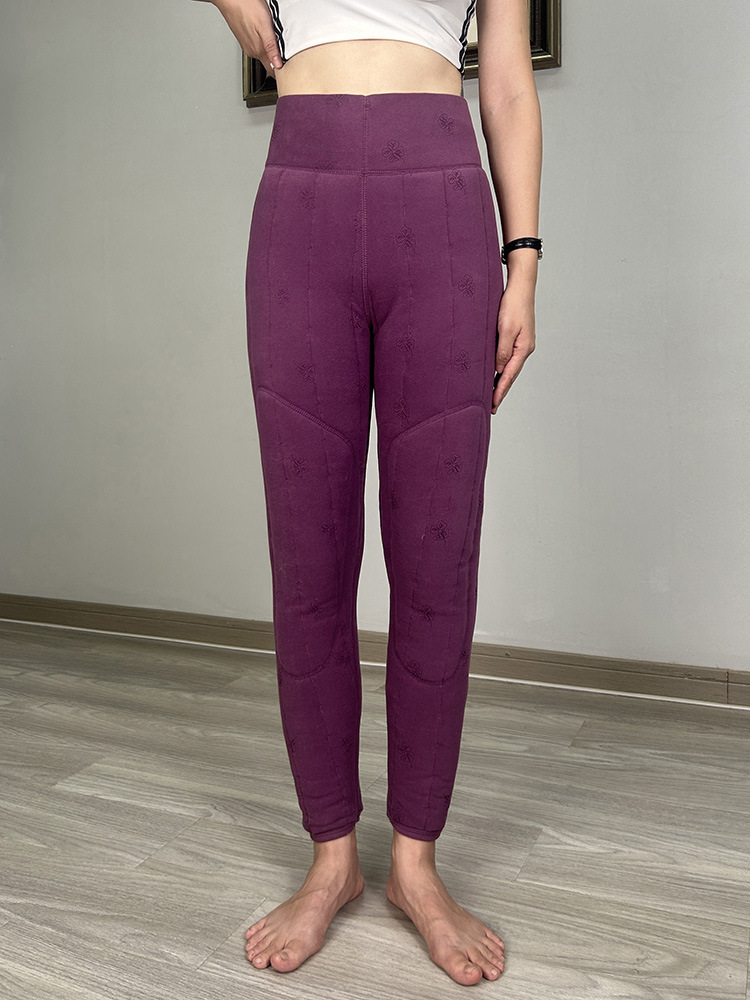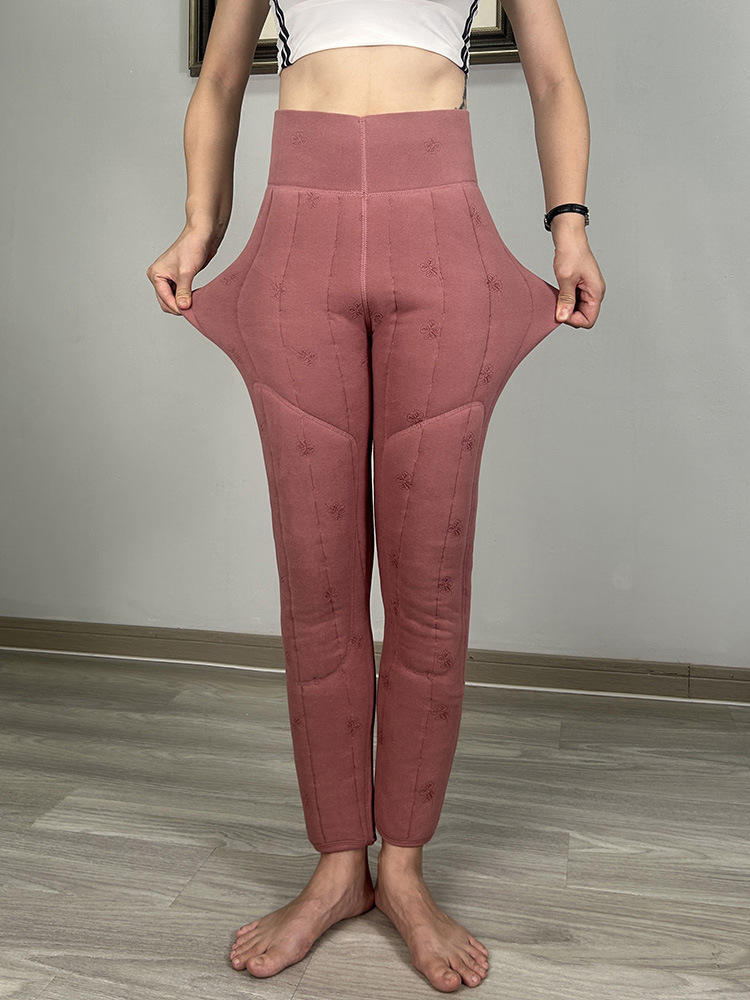 여성용 양모 내부 꽃면 바지 겨울 기모 따뜻하고 편안한 북동쪽 방화 바지 노인을위한 두꺼운 허리 무릎 바지