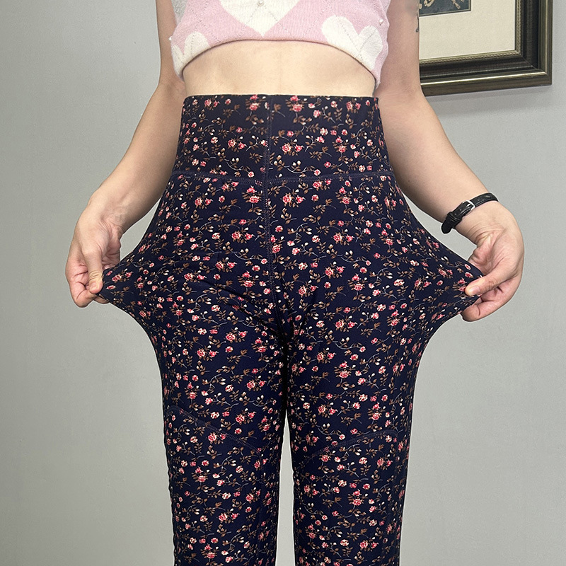 여성용 양모 내부 꽃면 바지 겨울 기모 따뜻하고 편안한 북동쪽 방화 바지 노인을위한 두꺼운 허리 무릎 바지스토어 가기